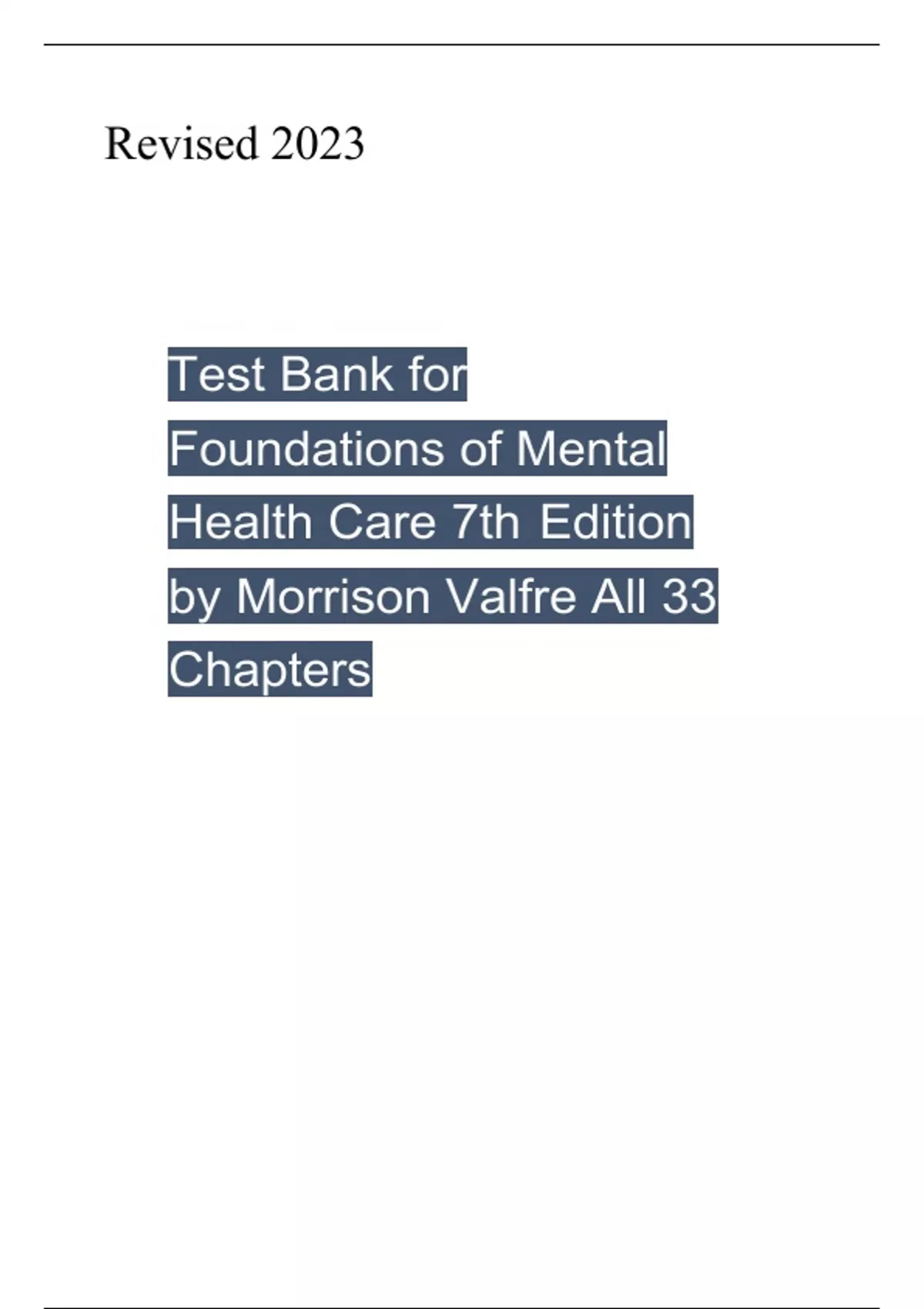 Test Bank for Foundations of Mental Health Care 7th Edition by Morrison Valfre All 33 Chapters (with questions and answers)