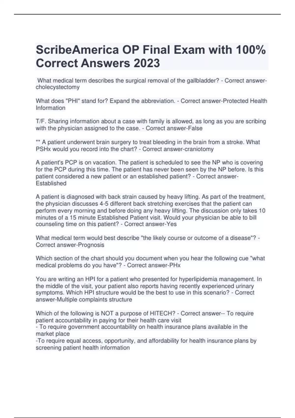 ScribeAmerica OP Final Exam Questions with 100% Correct Answers 2023