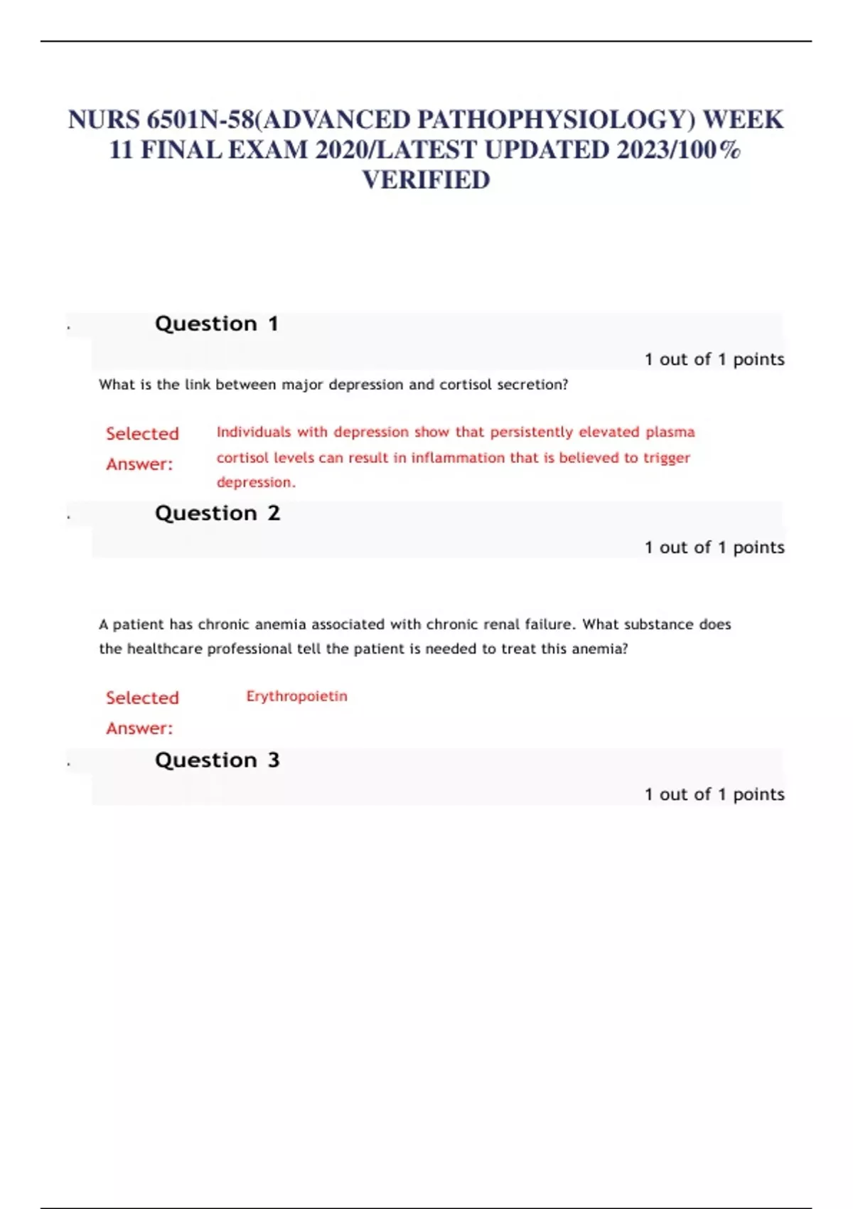 NURS 6501N-58(ADVANCED PATHOPHYSIOLOGY) WEEK 11 FINAL EXAM 2020/LATEST UPDATED 2023/100% VERIFIED