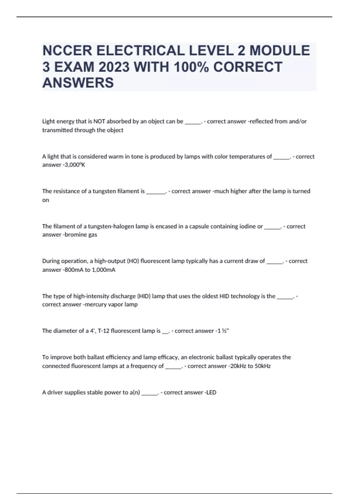 NCCER Electrical BUNDLED exam 2023 with 100% correct answers