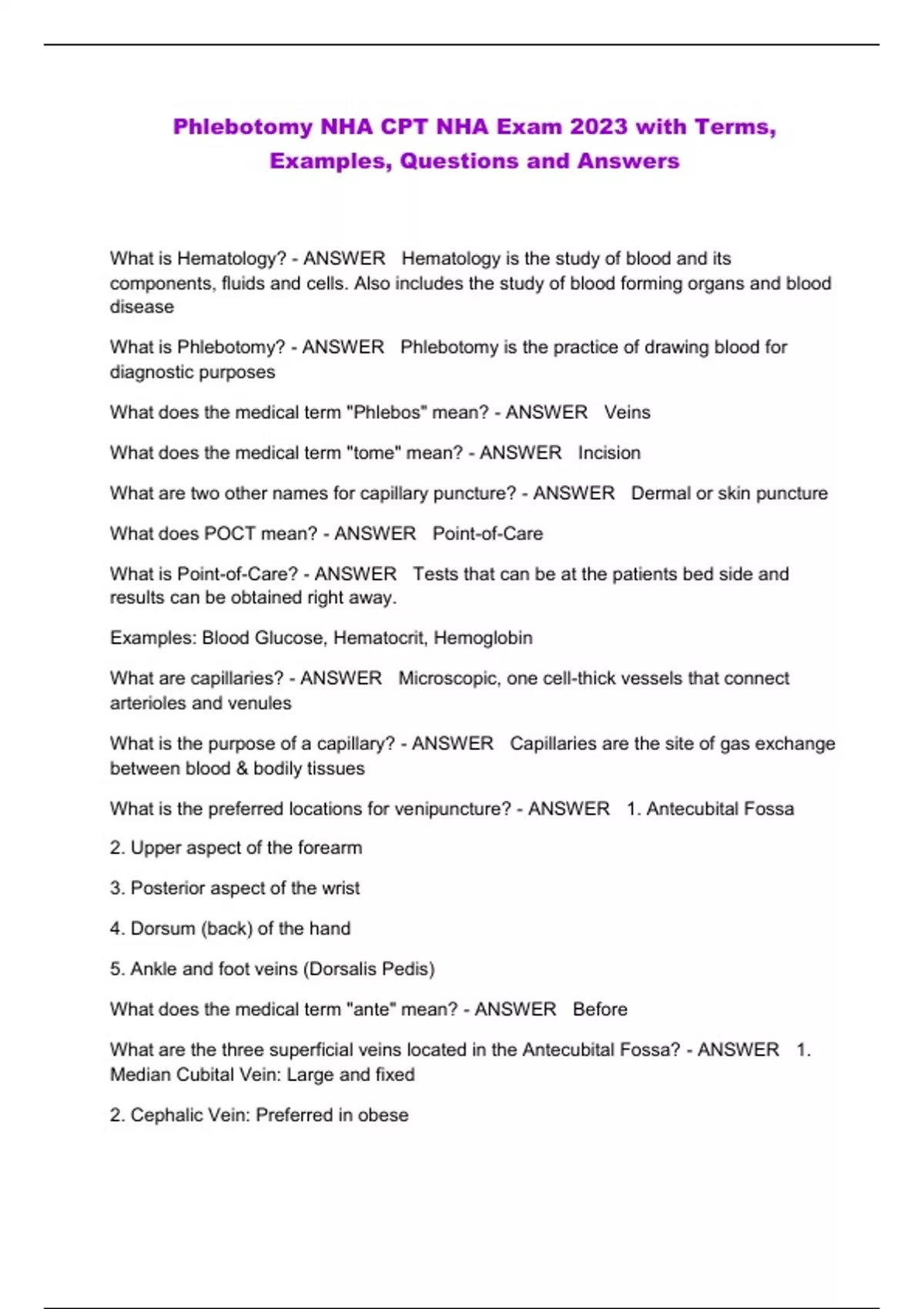 Phlebotomy NHA CPT NHA Exam 2023 with Terms, Examples, Questions and Answers