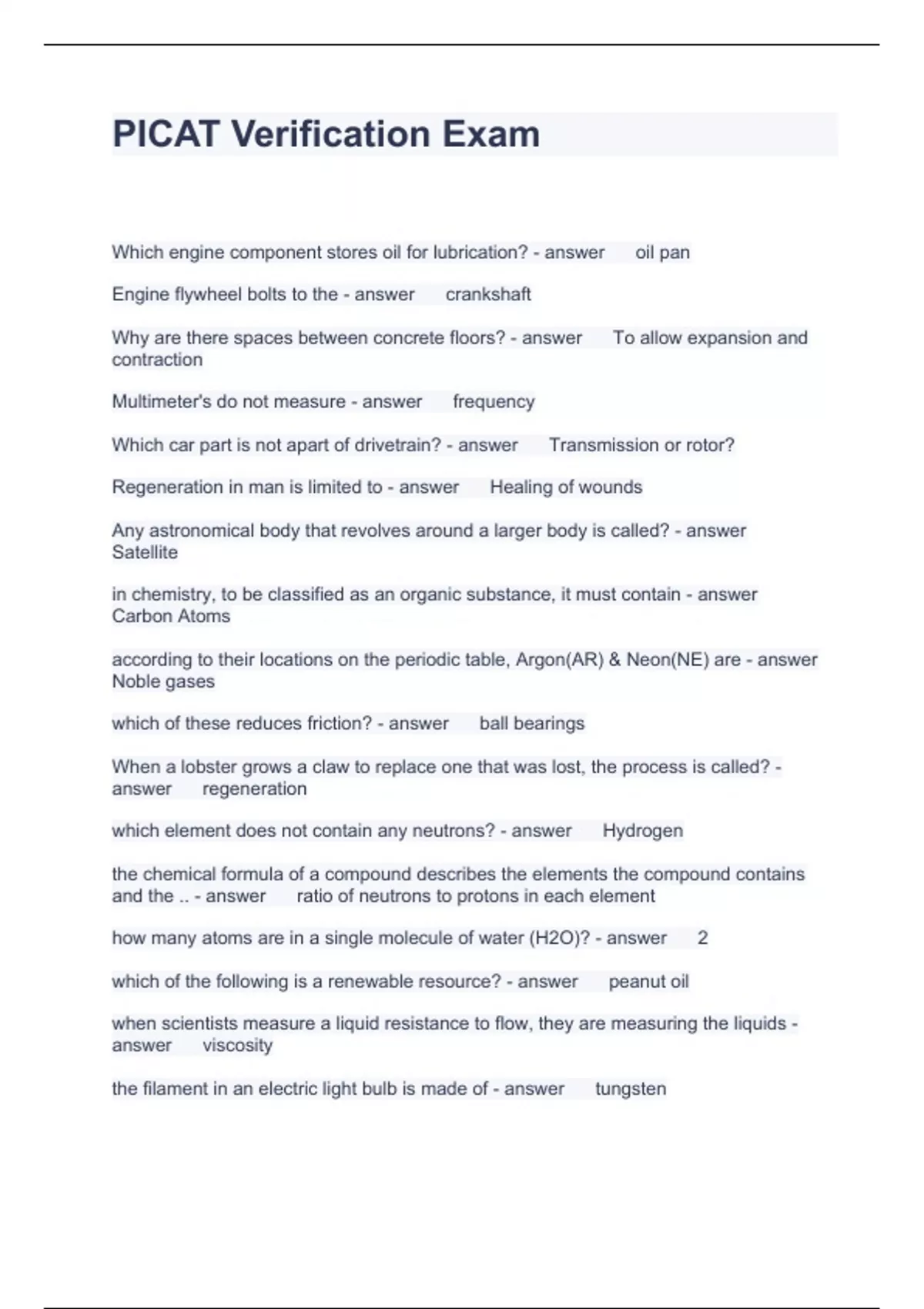 BUNDLE OF PICAT TEST EXAM ,A+ CONTENT 2023