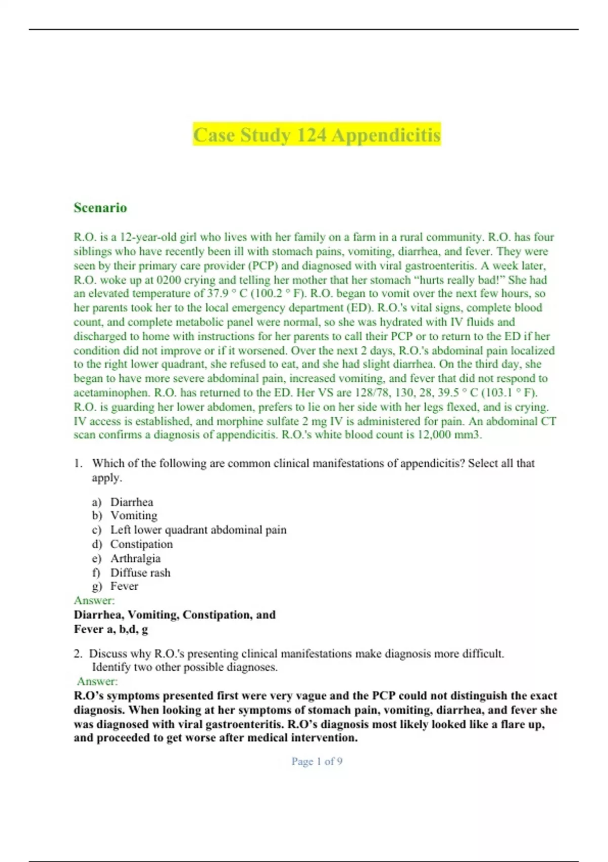 Case Study 124 Appendicitis 2023 update 100% verified questions and answers A+ guaranteed