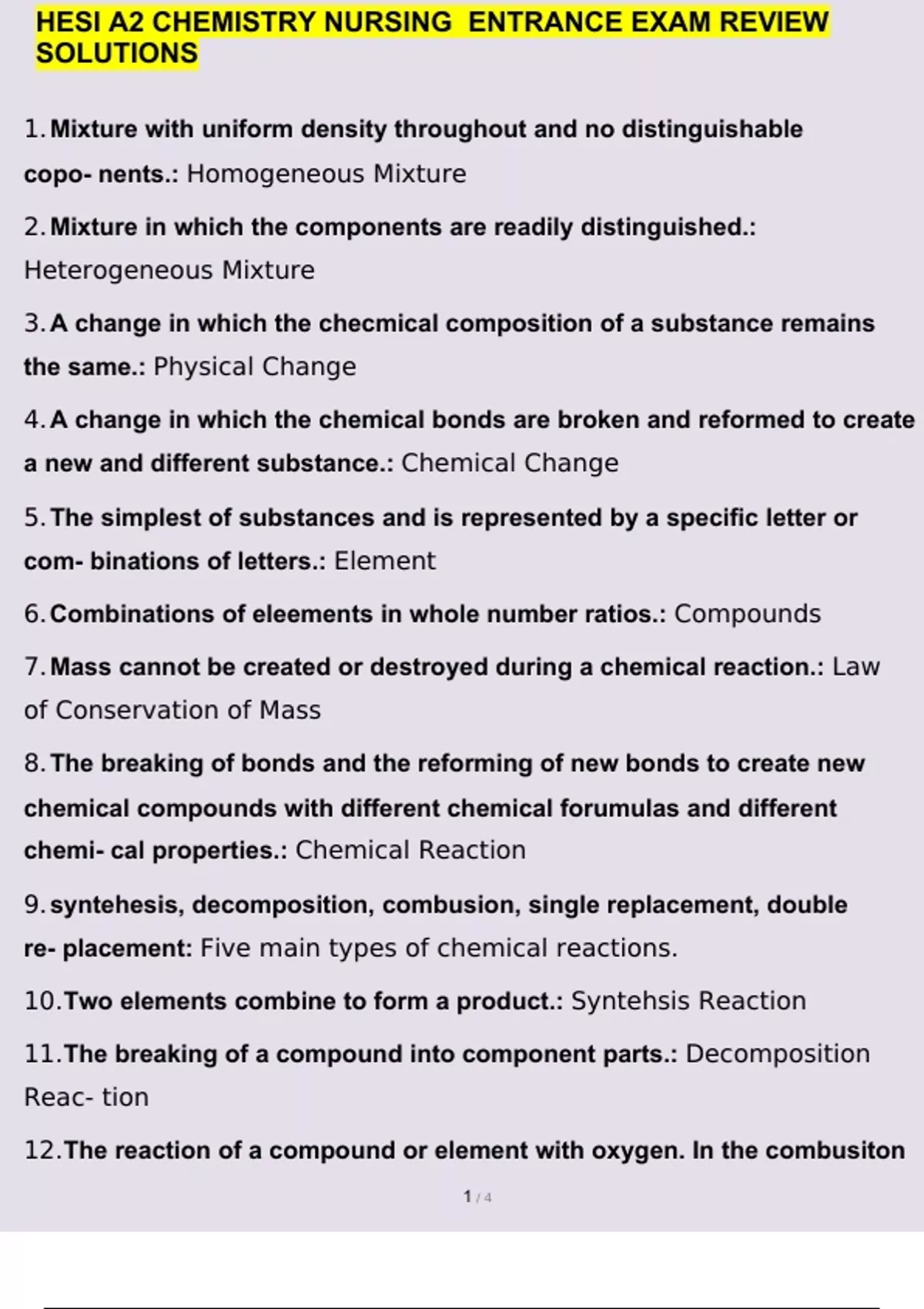 HESI A2 CHEMISTRY NURSING ENTRANCE EXAM REVIEW SOLUTIONS QUESTIONS AND ANSWERS GRADED A+