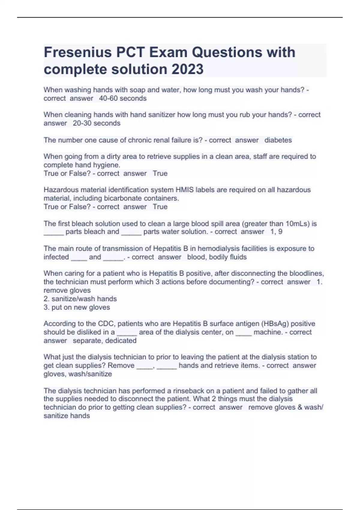 PACKAGE DEAL OF FRESCENIUS QUESTION AND ANSWERS ALREADY PASSED 2023