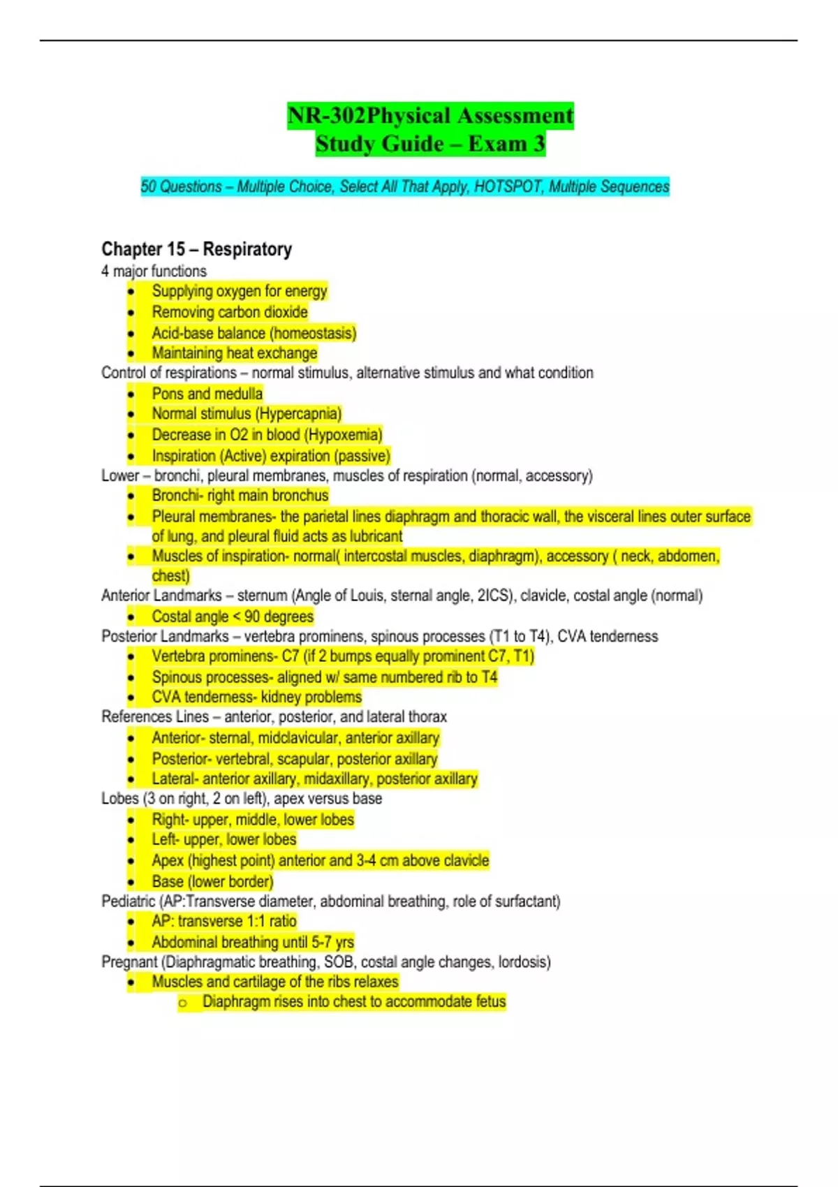 NR 302 Physical Assessment STUDY GUIDE QUESTIONS WITH 100% VERIFIED ANSERWS 2023