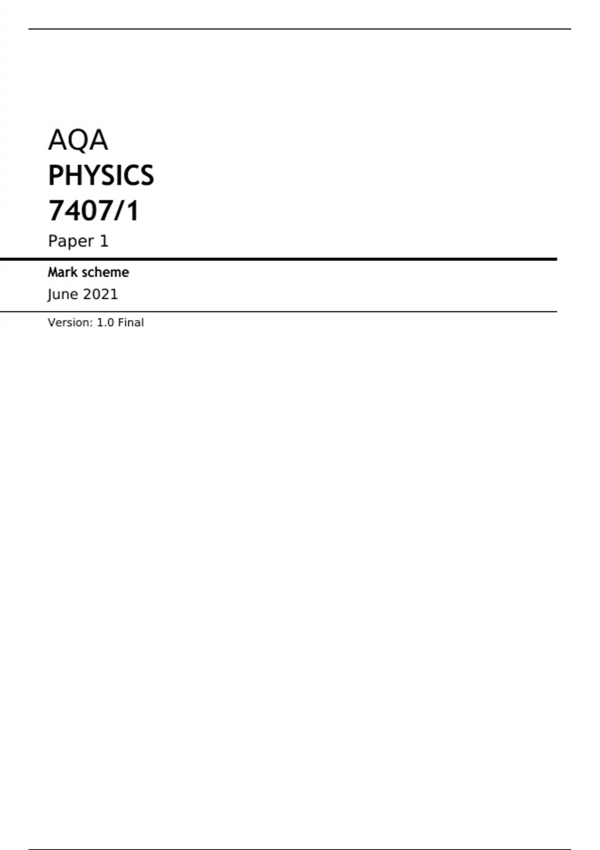 AQA PHYSICS 7407/1 Paper 1