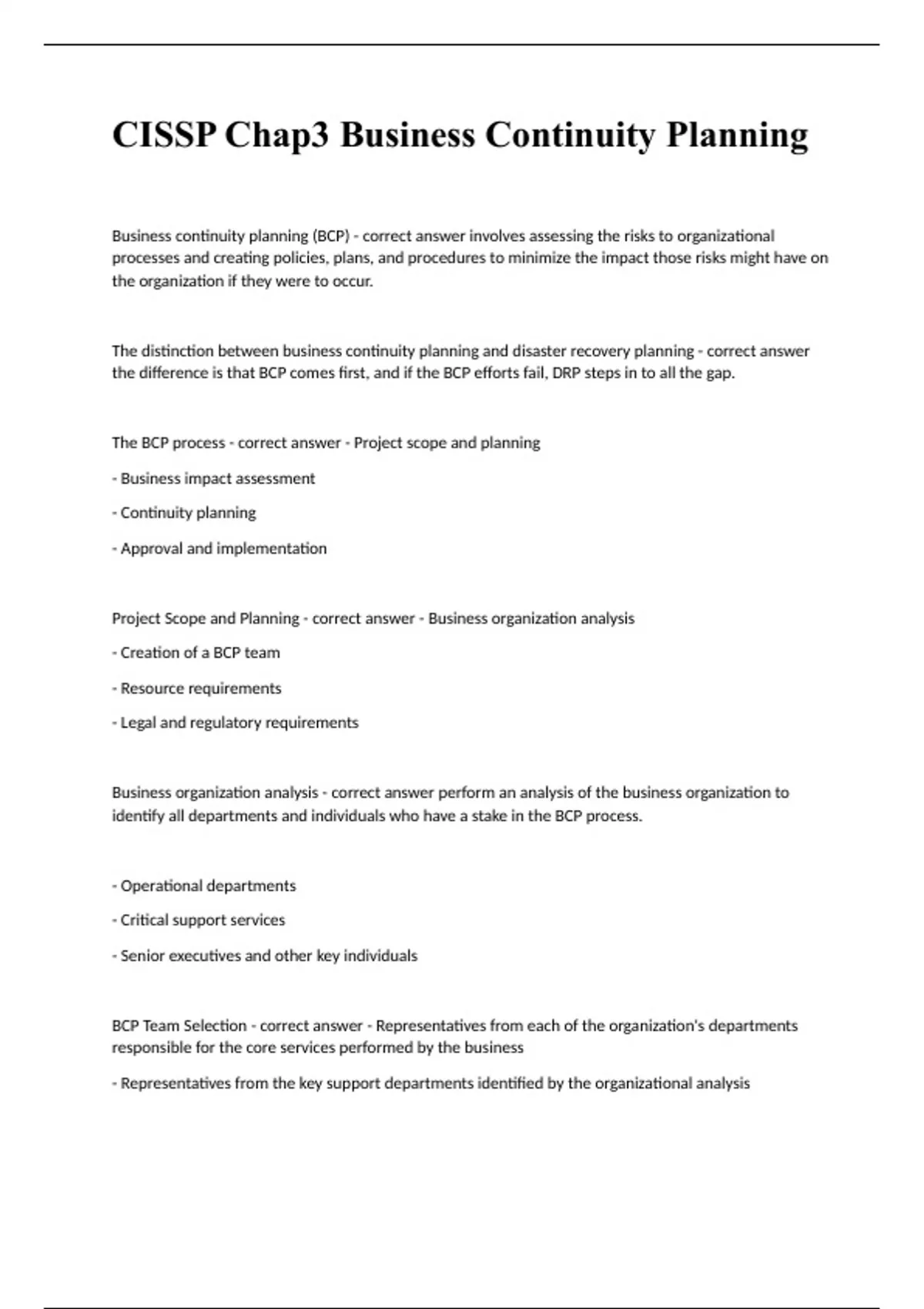 CISSP Chap3 Business Continuity Planning fully solved 2023