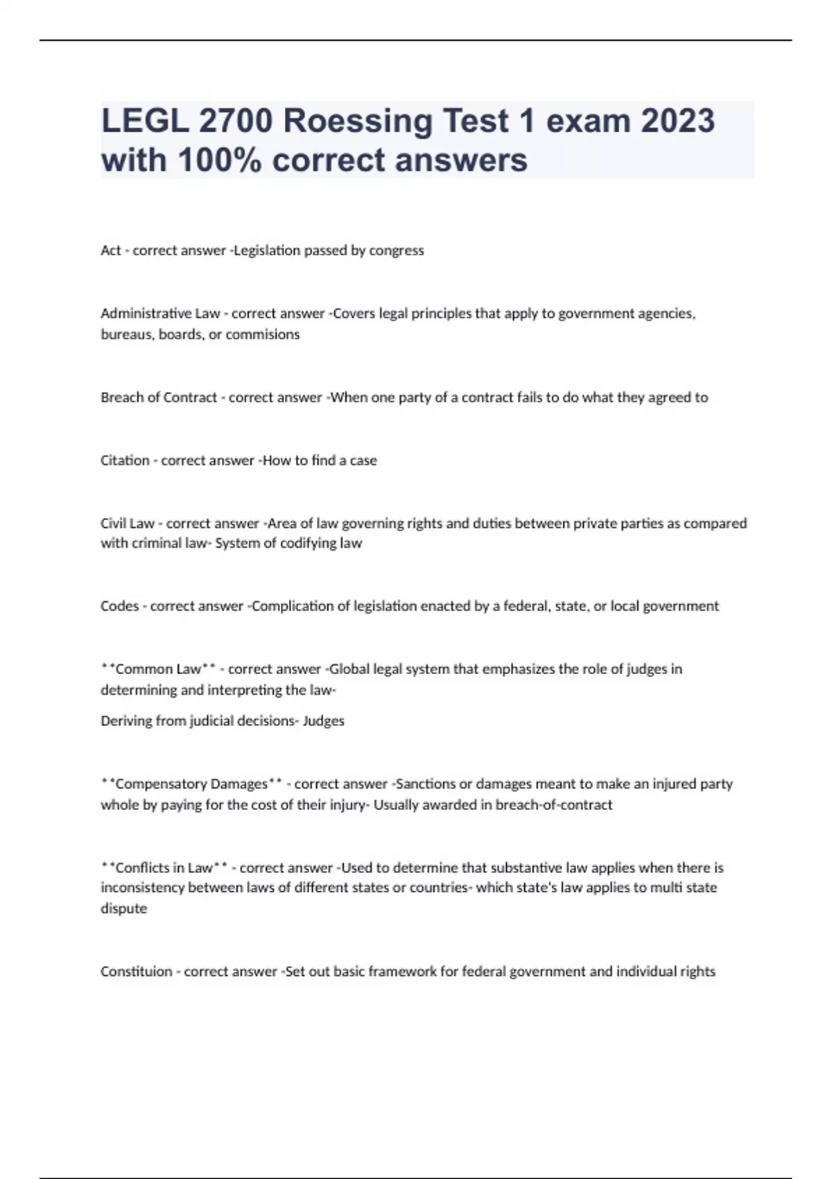 legl 2700 roessing test 1 exam 2023 with 100 corr
