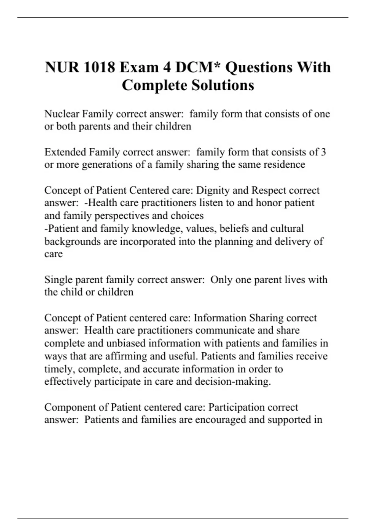 NUR 1018 Exam 4 DCM* Questions With Complete Solutions