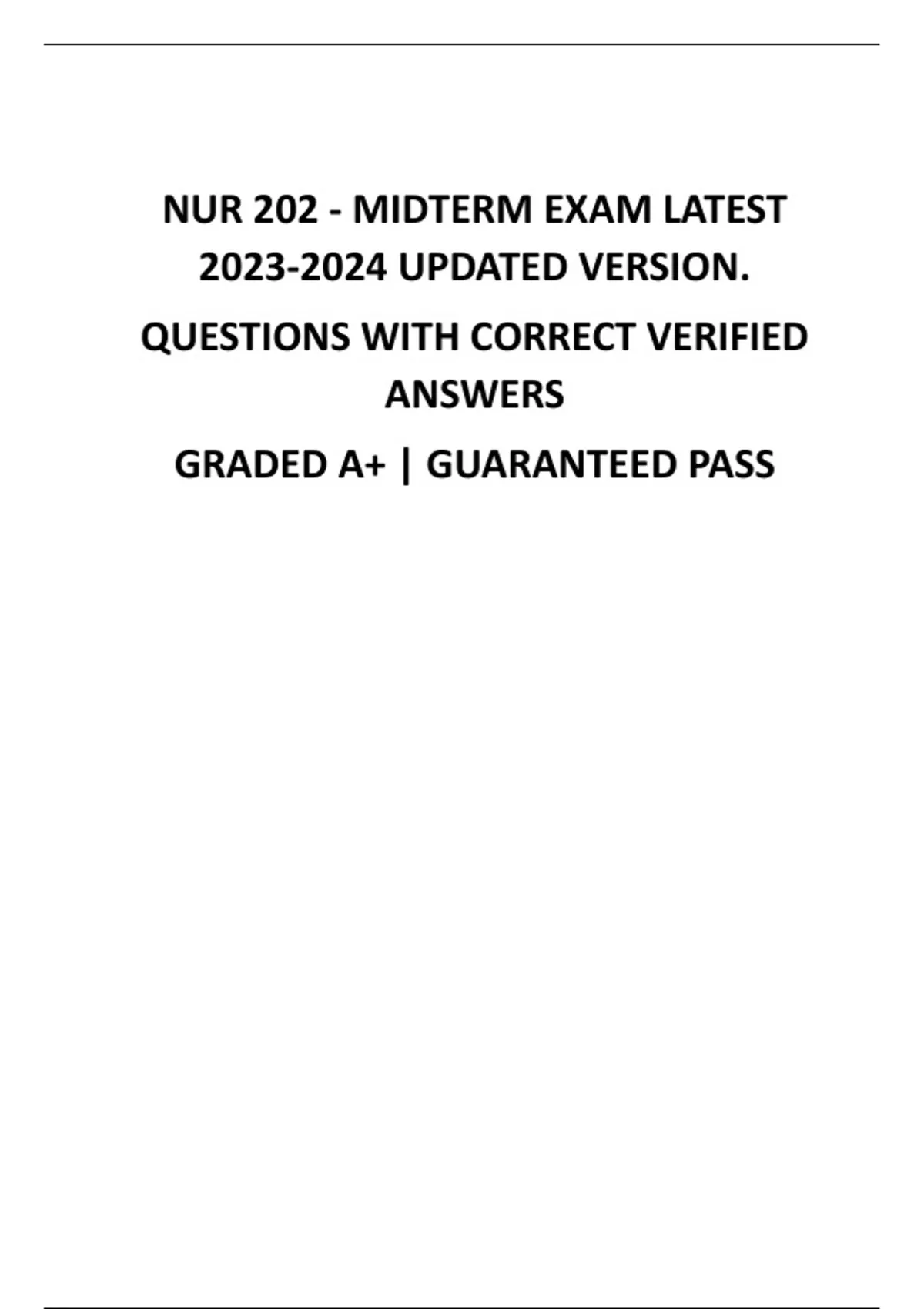 NUR 202 - MIDTERM EXAM LATEST UPDATED VERSION. QUESTIONS WITH CORRECT VERIFIED ANSWERS GRADED A+ | GUARANTEED PASS