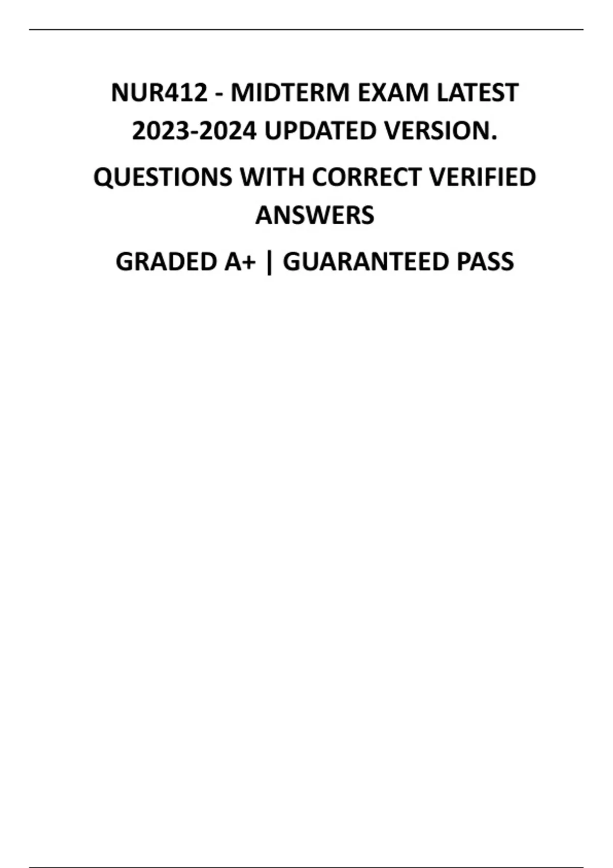 NUR412 - MIDTERM EXAM LATEST UPDATED VERSION. QUESTIONS WITH CORRECT VERIFIED ANSWERS GRADED A+ | GUARANTEED PASS