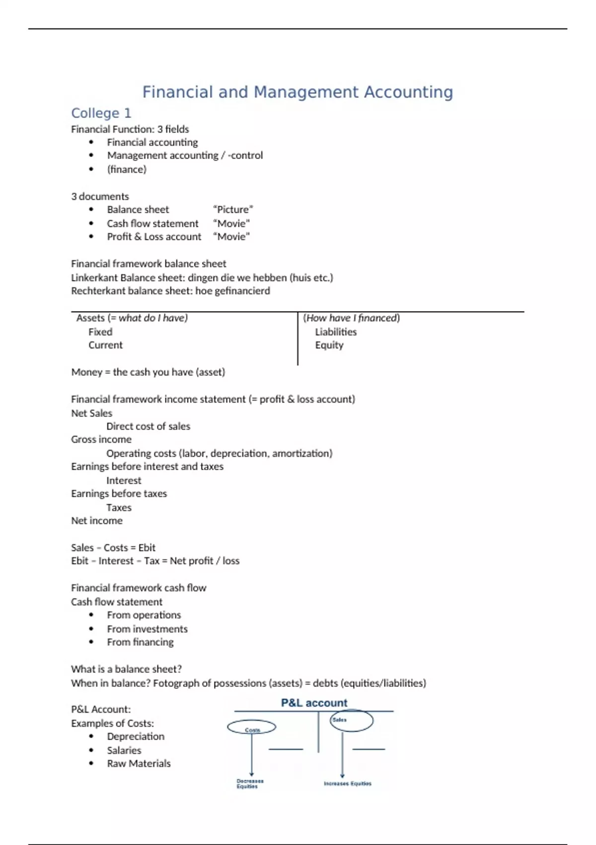 Assets (= what do I have) (How have I financed)