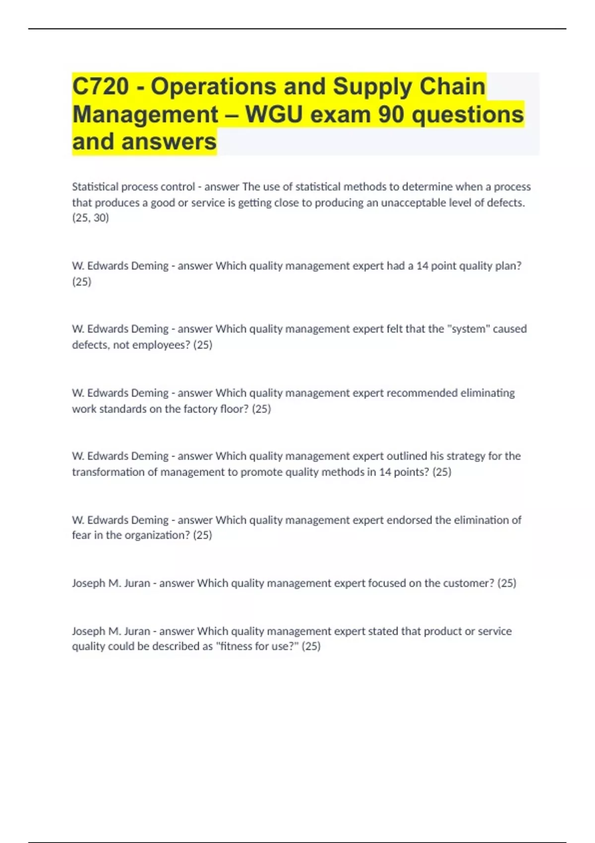 C720 - Operations and Supply Chain Management – WGU exam| 90 questions and answers.