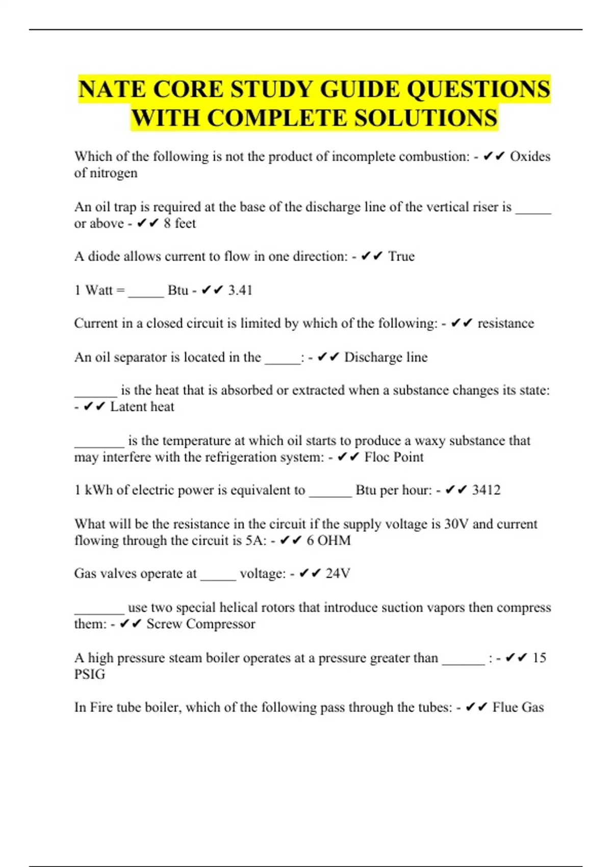 NATE CORE STUDY GUIDE QUESTIONS WITH COMPLETE SOLUTIONS