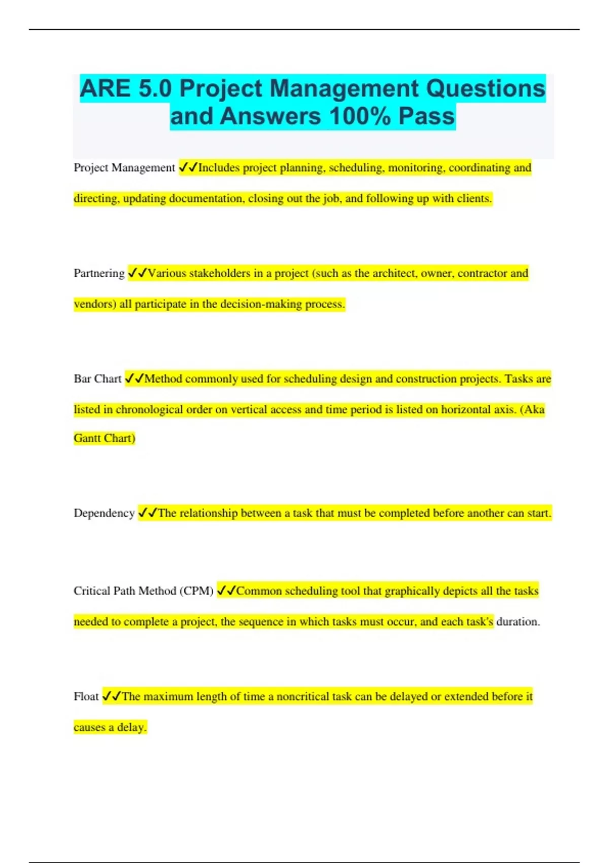 ARE 5.0 Project Management Questions and Answers 100% Pass