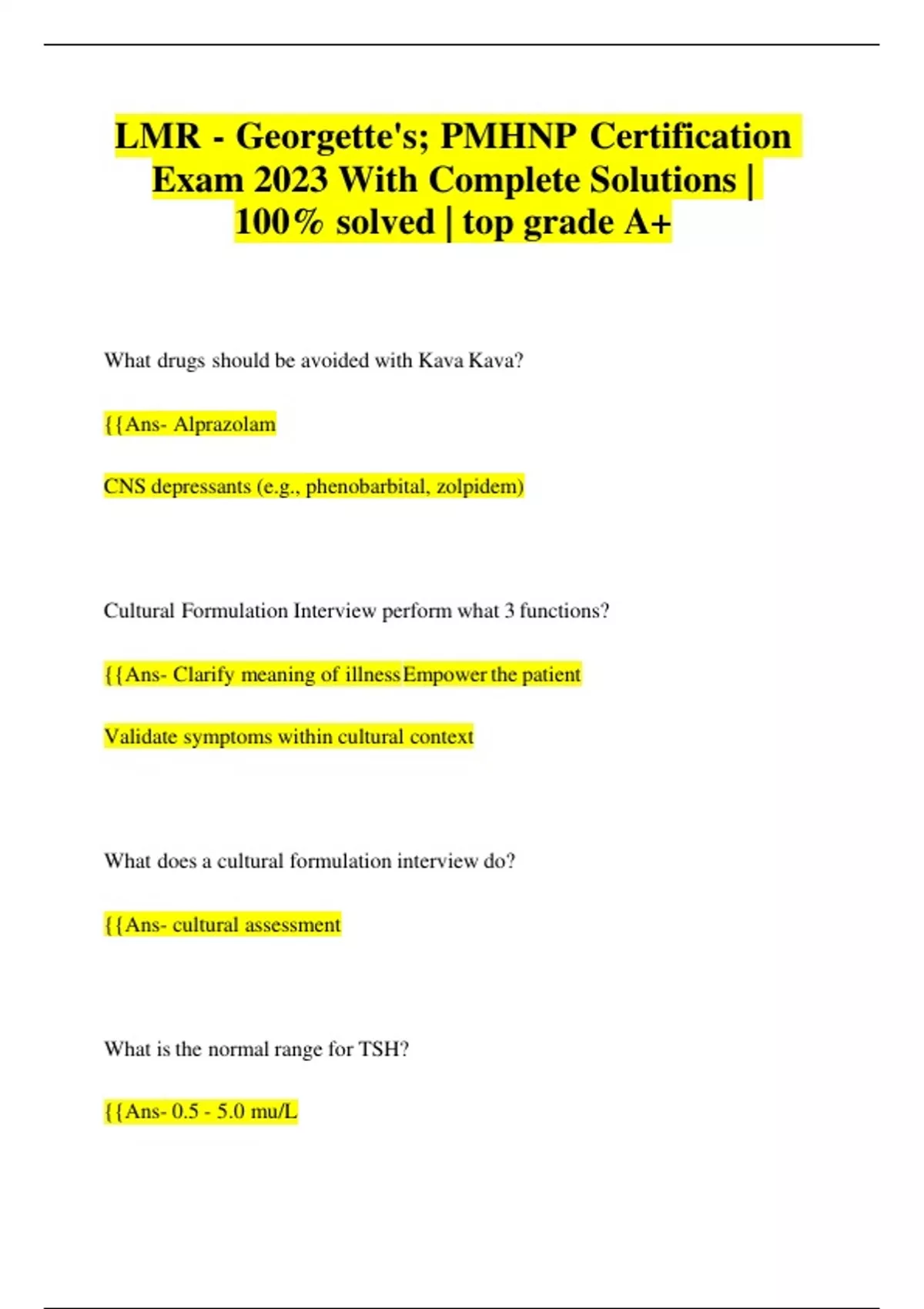 LMR - Georgette's; PMHNP Certification Exam 2023 With Complete Solutions | 100% solved | top grade A+ | Latest 2023/24 | Updated & Verified | Guaranteed Success | 121 Pages