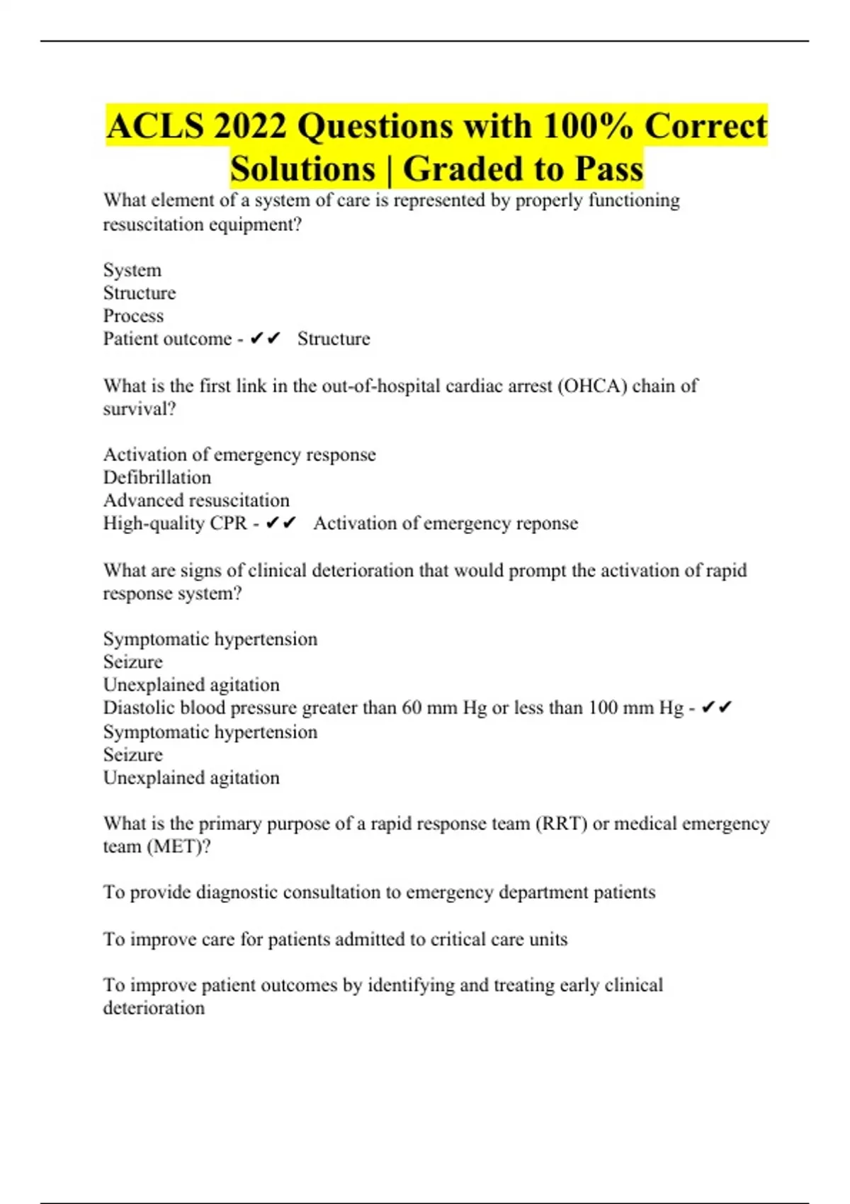 ACLS 2022 Questions with 100% Correct Solutions | Graded to Pass