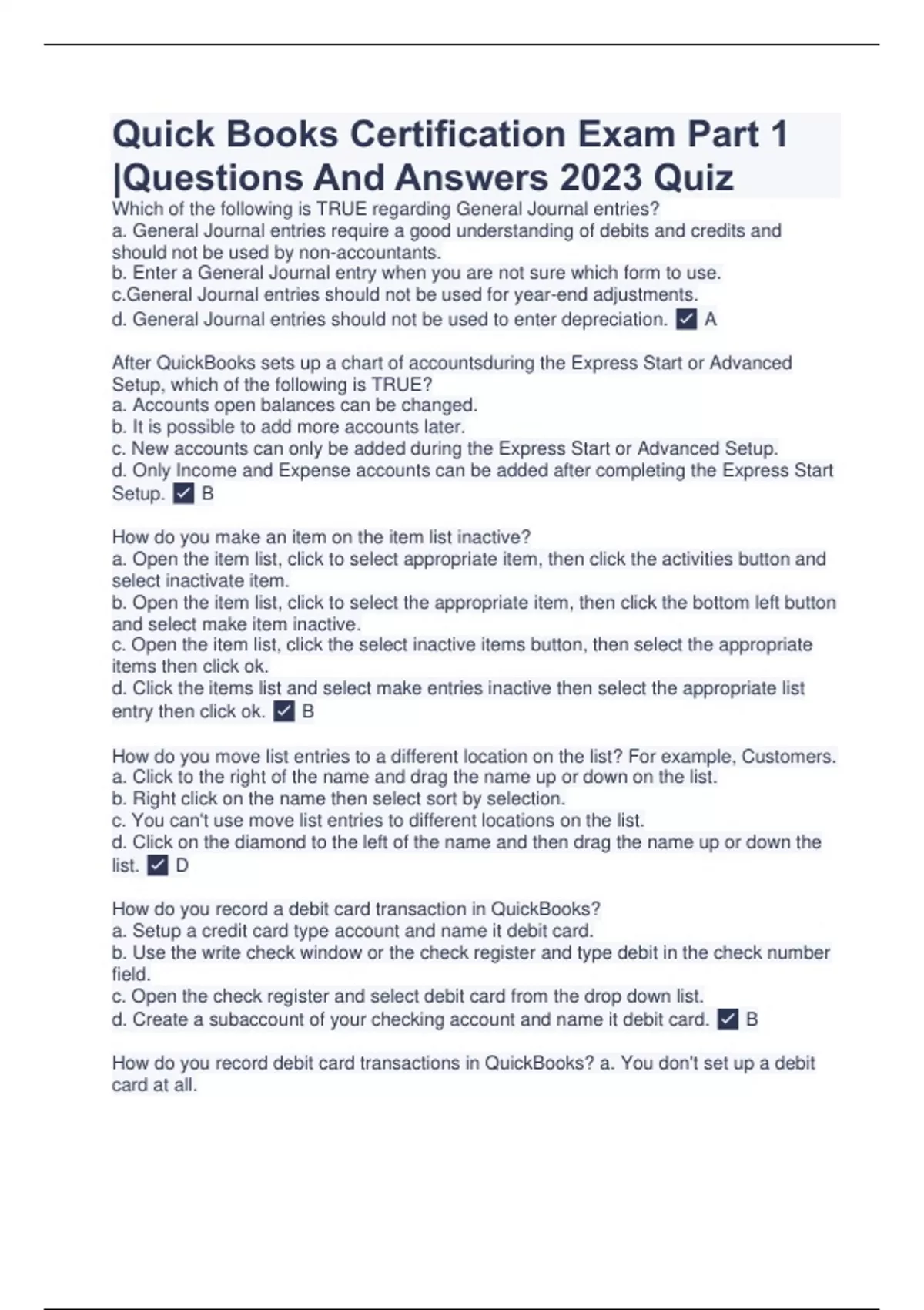 Quick Books Certification Exam Part 1 |Questions And Answers 2023 Quiz Quick Books Certification Exam Part 1 |Questions And Answers 2023 Quiz