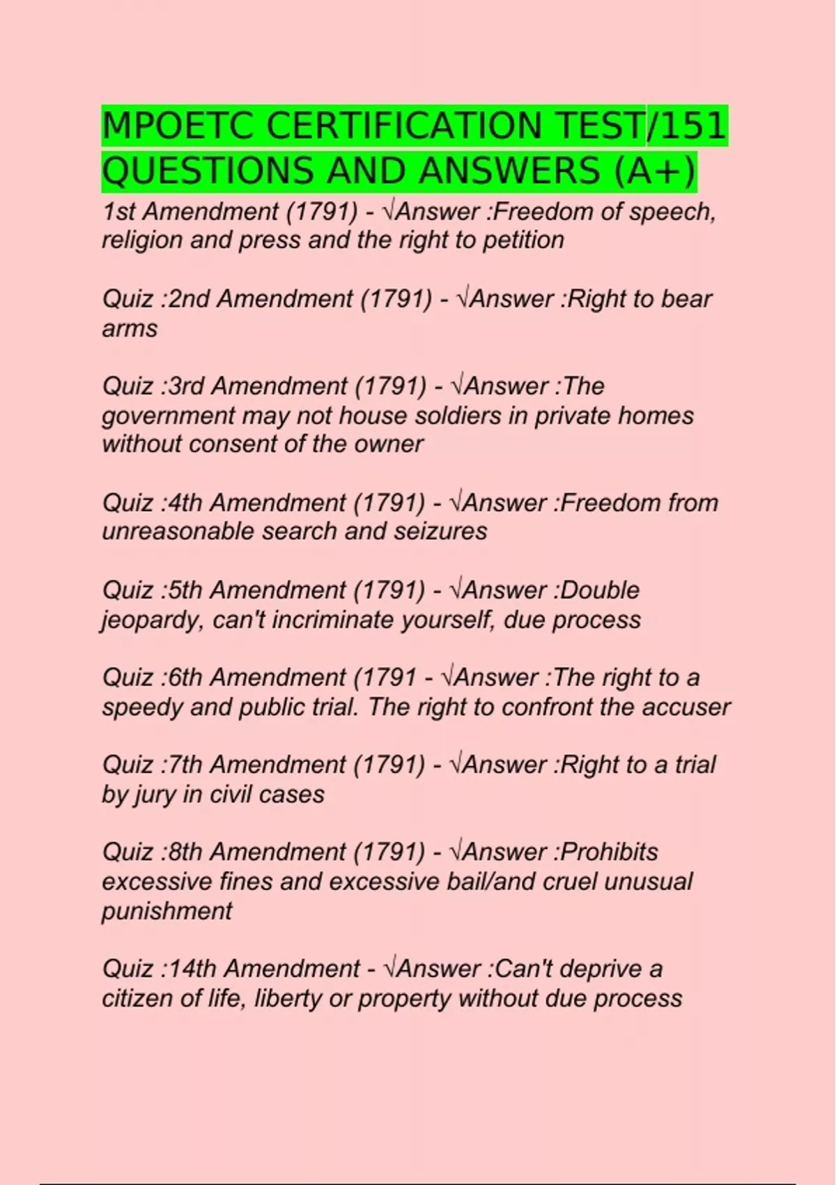MPOETC CERTIFICATION TEST/151 QUESTIONS AND ANSWERS (A+)