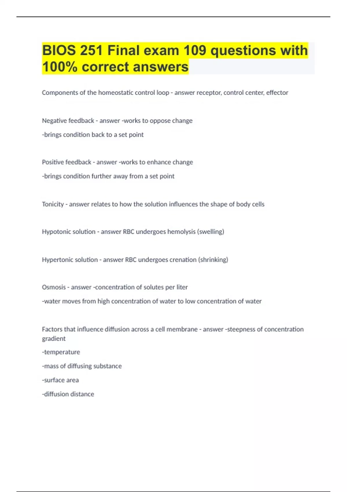 BIOS 251 Final exam |109 questions with 100% correct answers.
