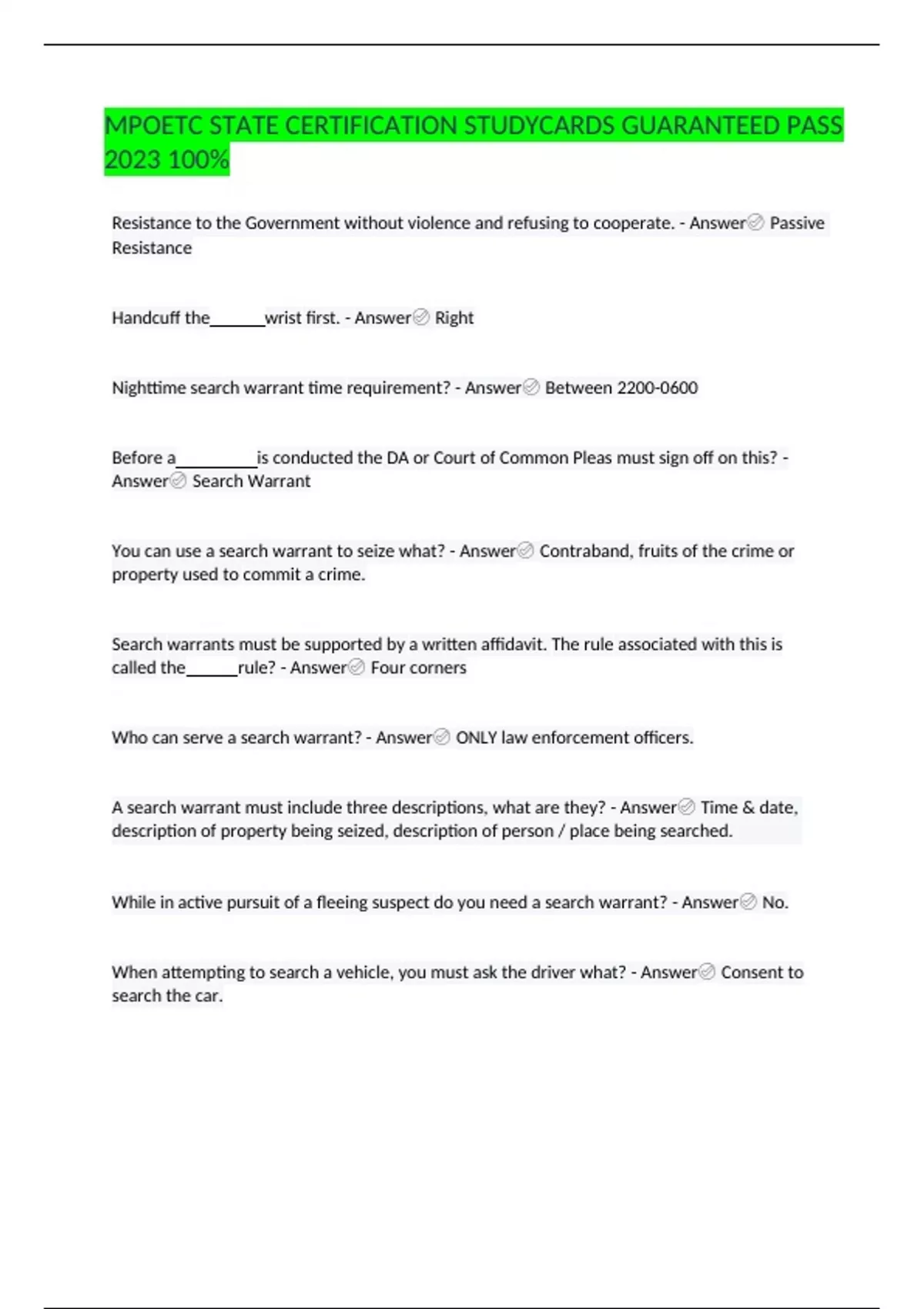 MPOETC STATE CERTIFICATION STUDYCARDS GUARANTEED PASS 2023 100%