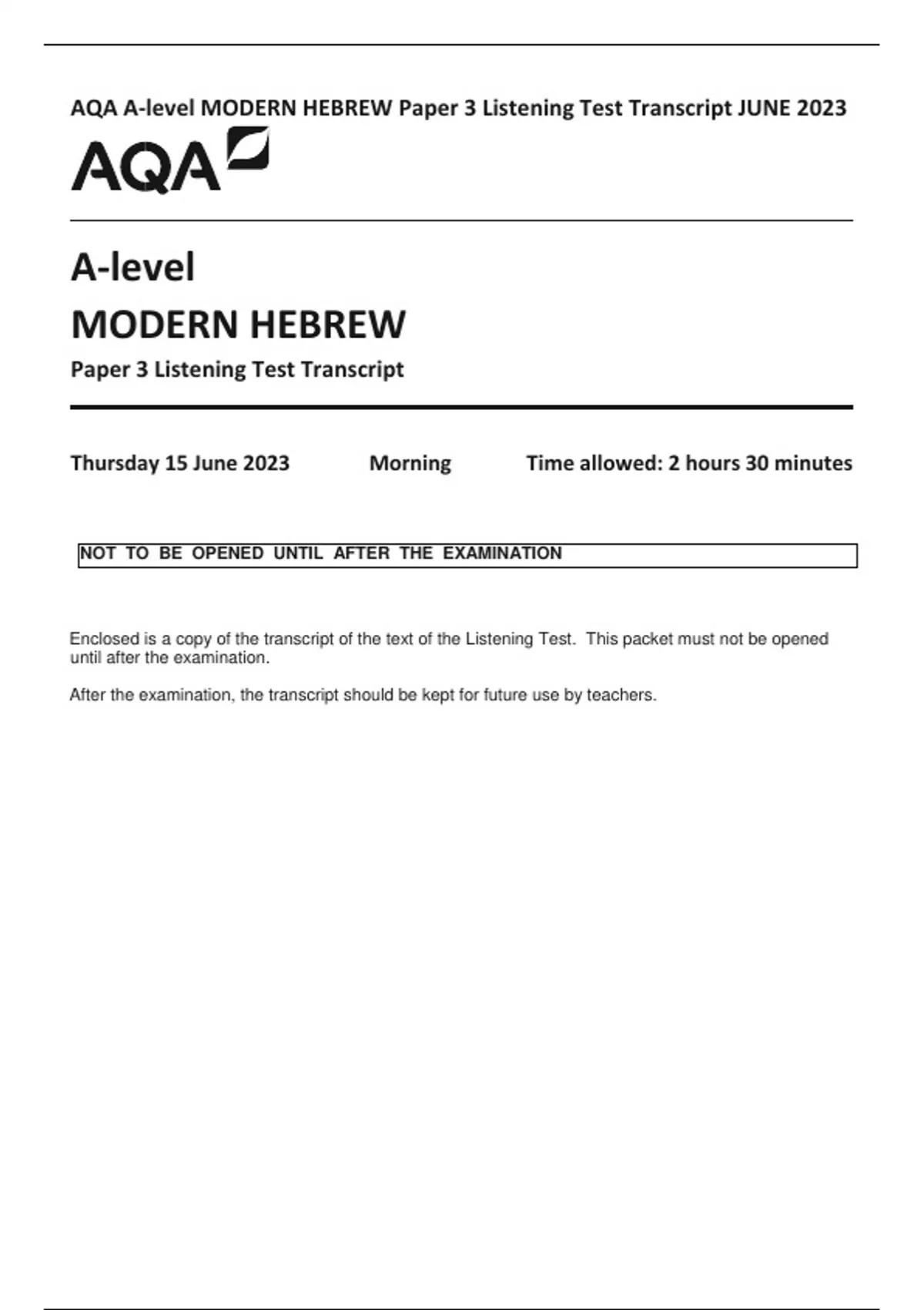 AQA A-level MODERN HEBREW Paper 3 Listening Test Transcript JUNE 2023