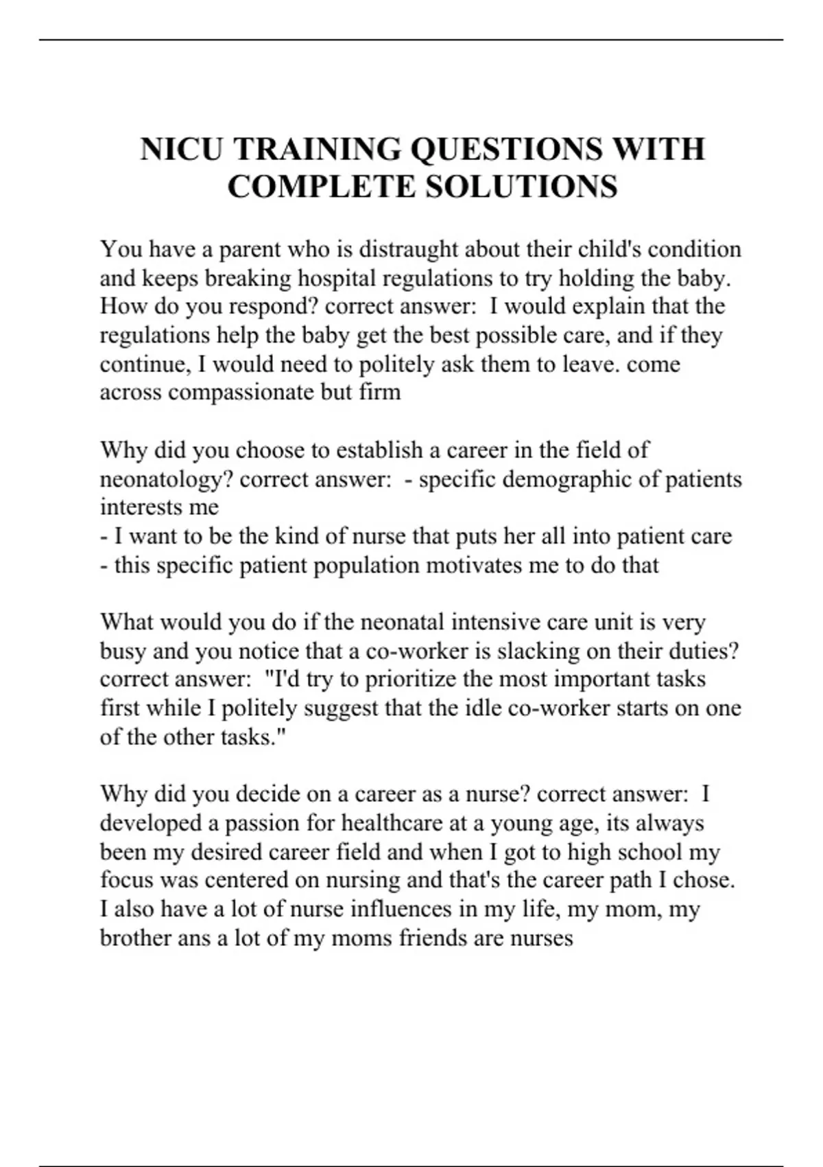 NICU TRAINING QUESTIONS WITH COMPLETE SOLUTIONS