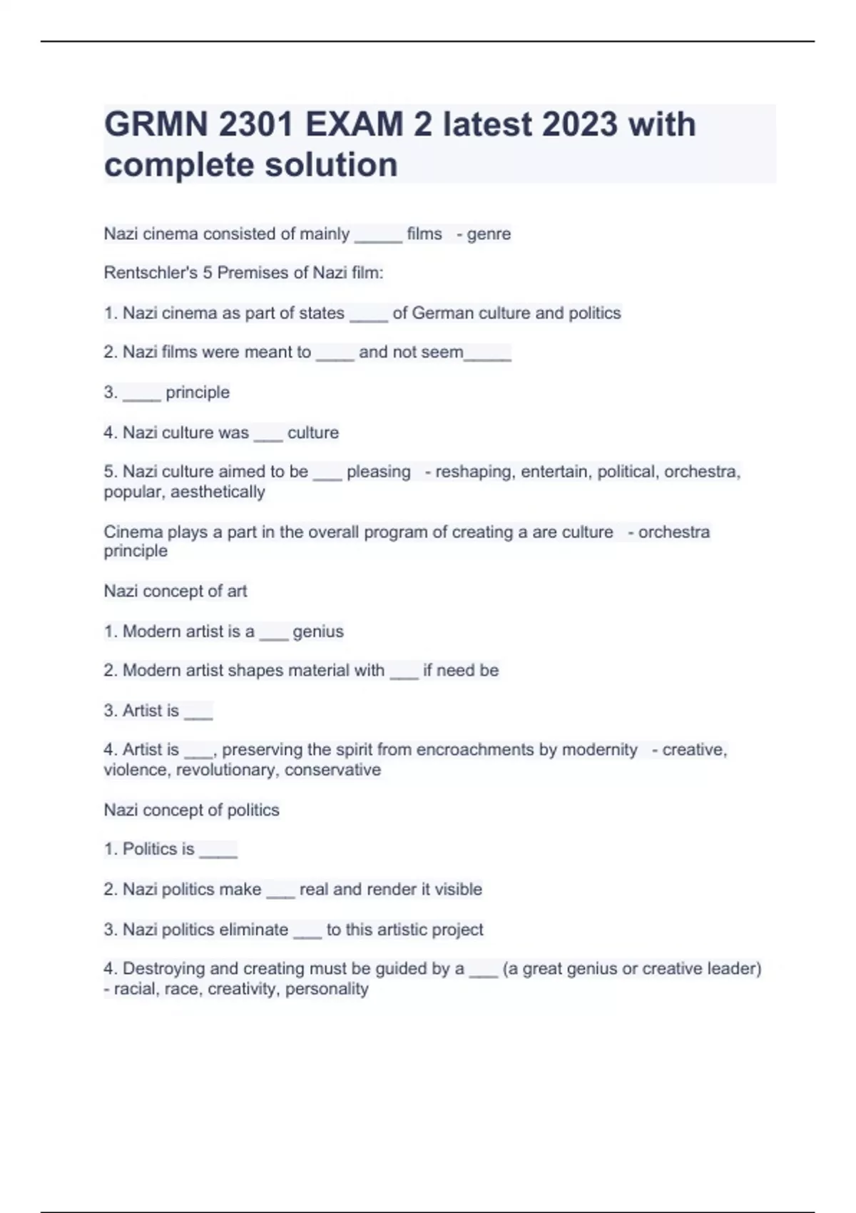 grmn 2301 exam 2 latest 2023 with complete solutio