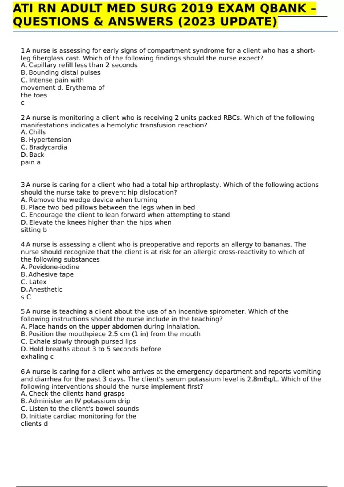 ATI RN ADULT MED SURG 2019 EXAM QBANK –QUESTIONS & ANSWERS (2023 UPDATE)