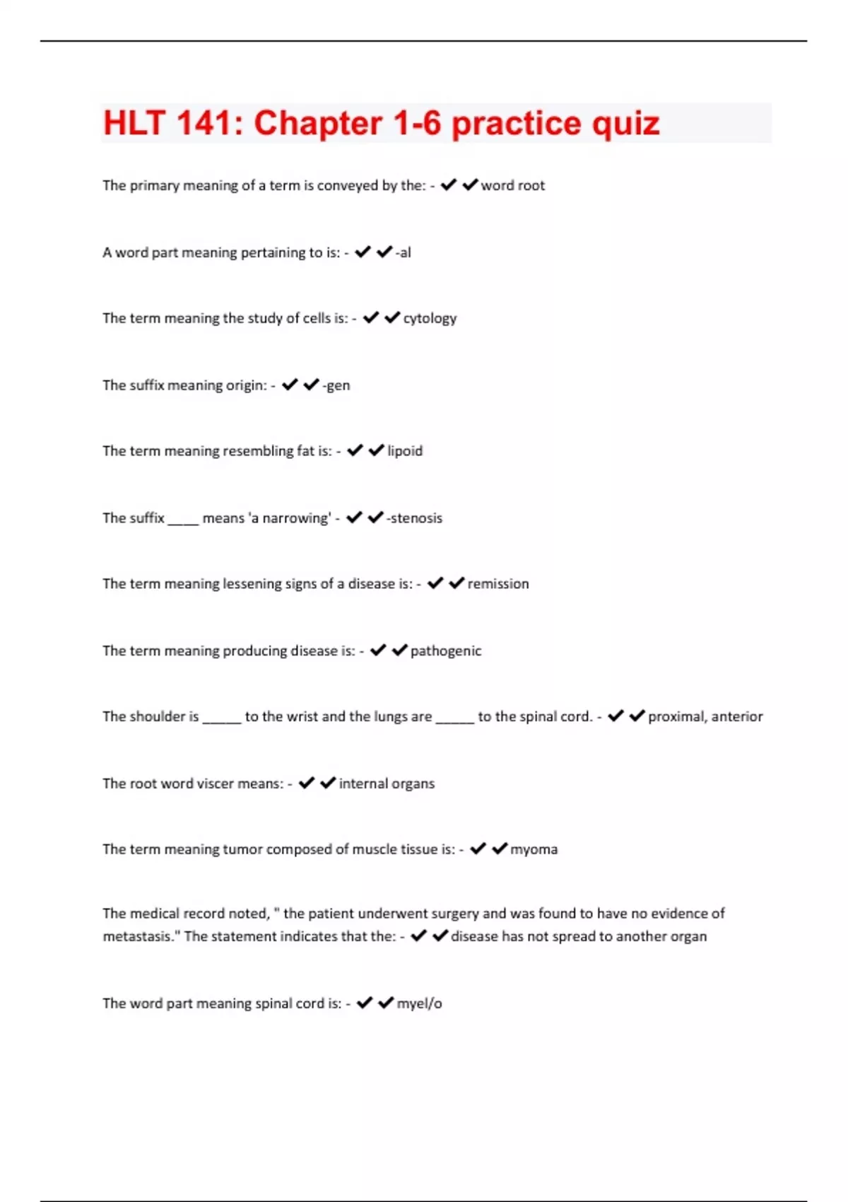 HLT 141: Chapter 1-6 practice quiz Exam Solved 100% Correct!!