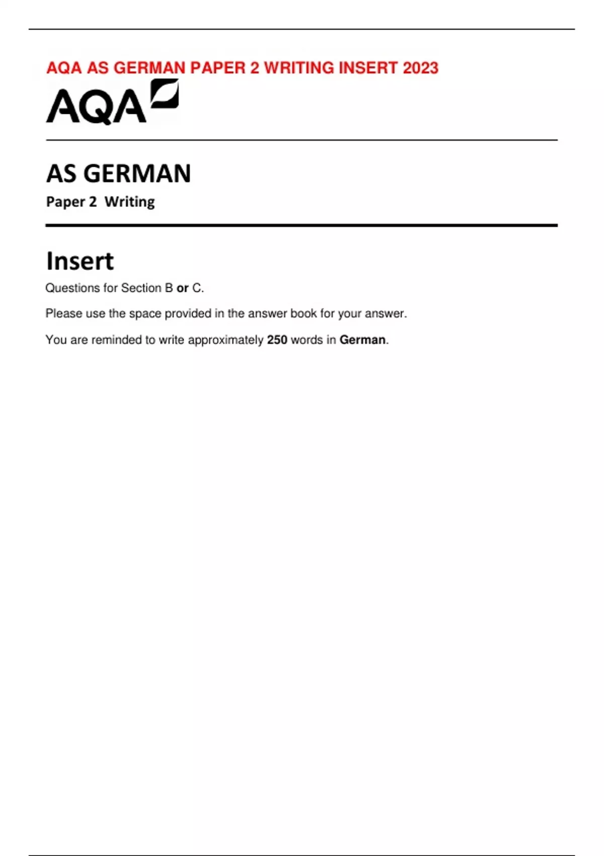 AQA AS GERMAN PAPER 2 WRITING INSERT 2023