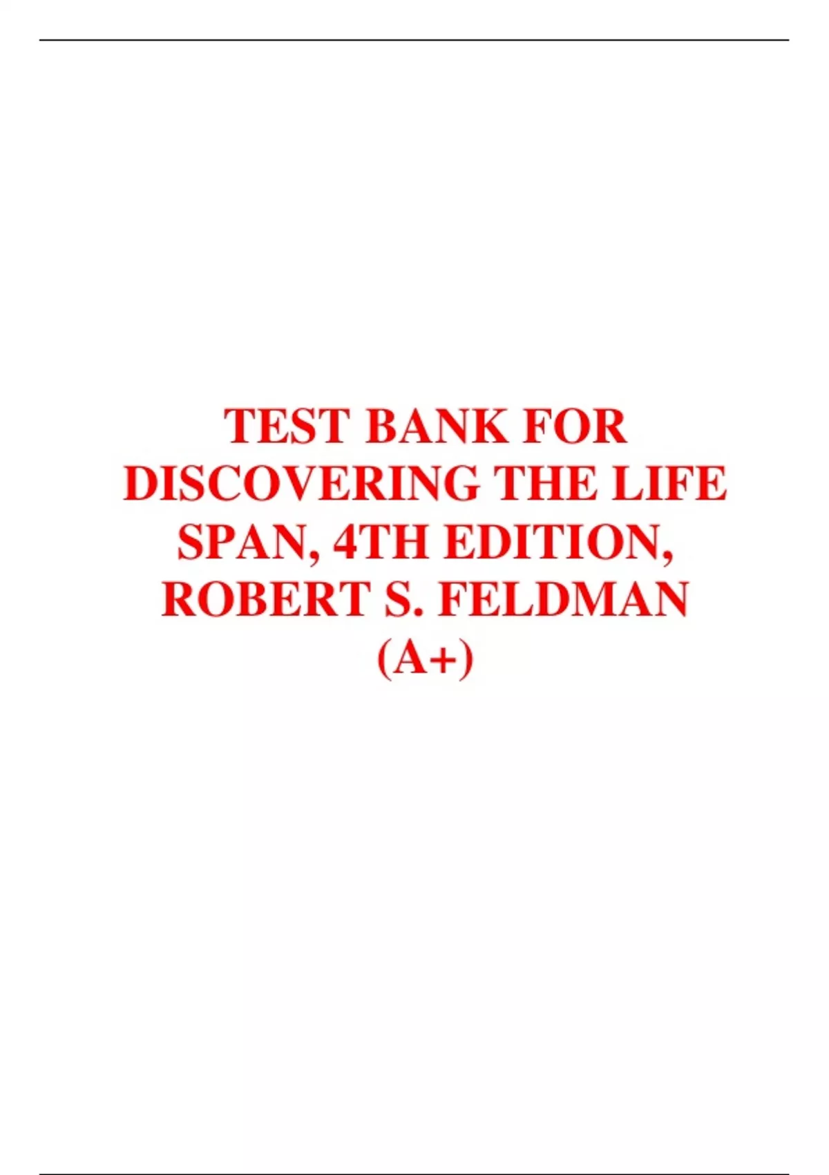 TEST BANK FOR DISCOVERING THE LIFE SPAN, 4TH EDITION, ROBERT S. FELDMAN (A+)
