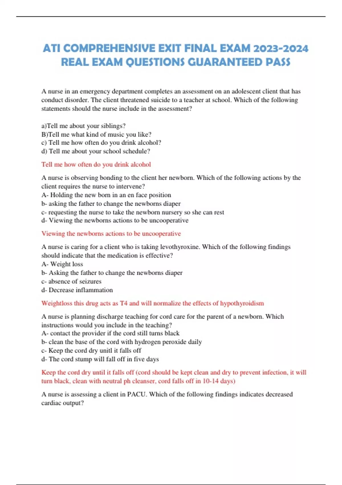 ATI COMPREHENSIVE EXIT FINAL EXAM REAL EXAM QUESTIONS GUARANTEED PASS