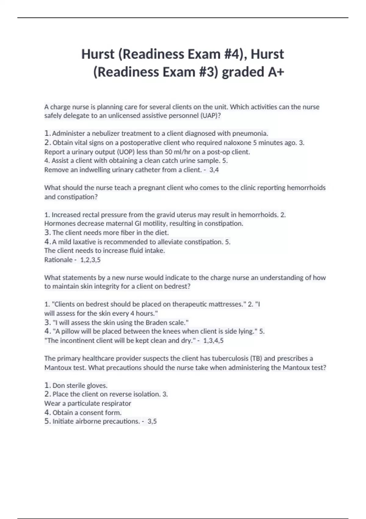 Hurst (Readiness Exam #4), Hurst (Readiness Exam #3) graded A+
