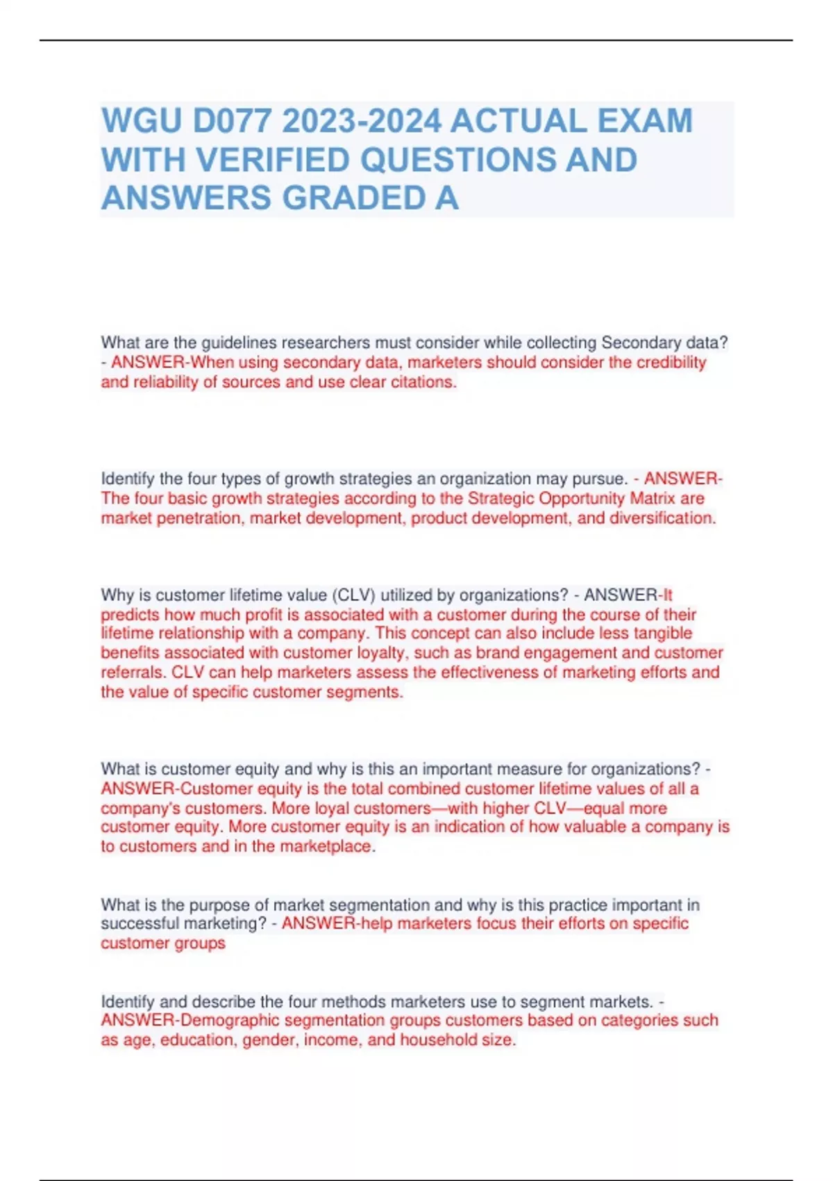 - WGU D077 2023-2024