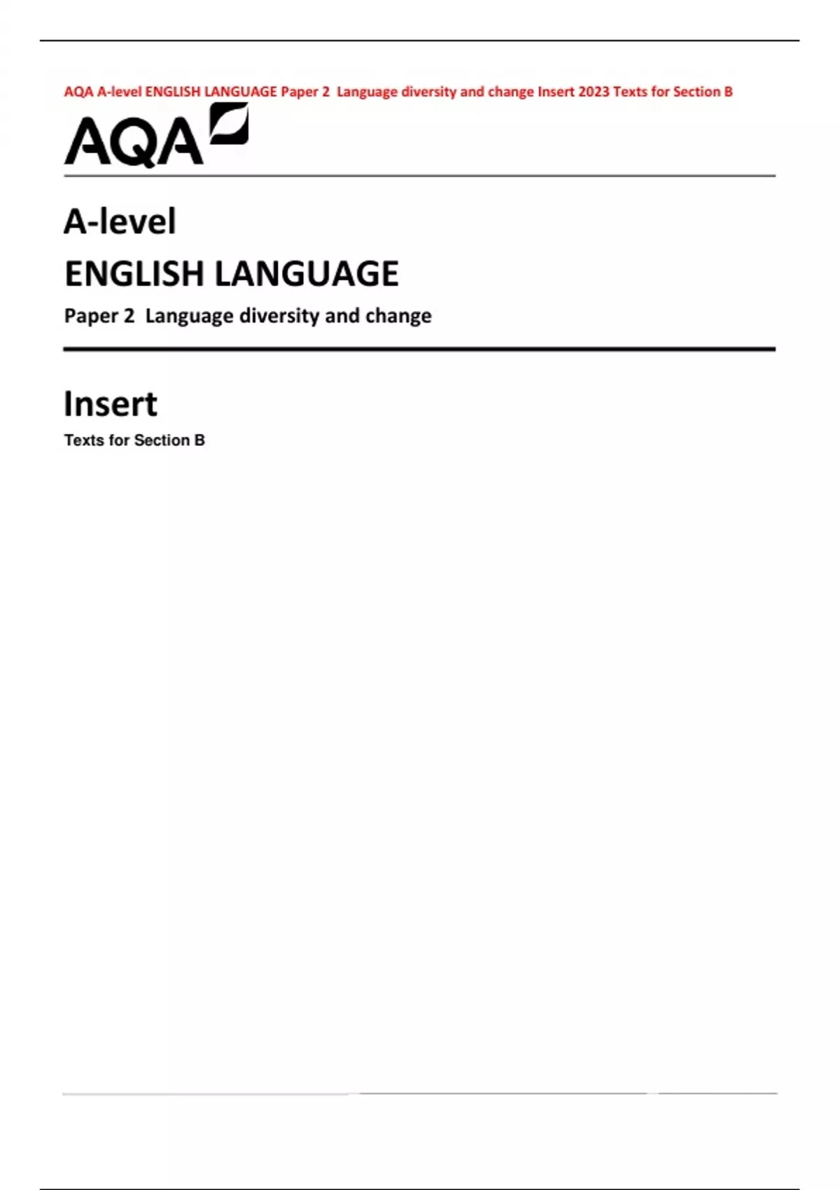 AQA A-level ENGLISH LANGUAGE Paper 2 Language diversity and change Insert 2023 Texts for Section B