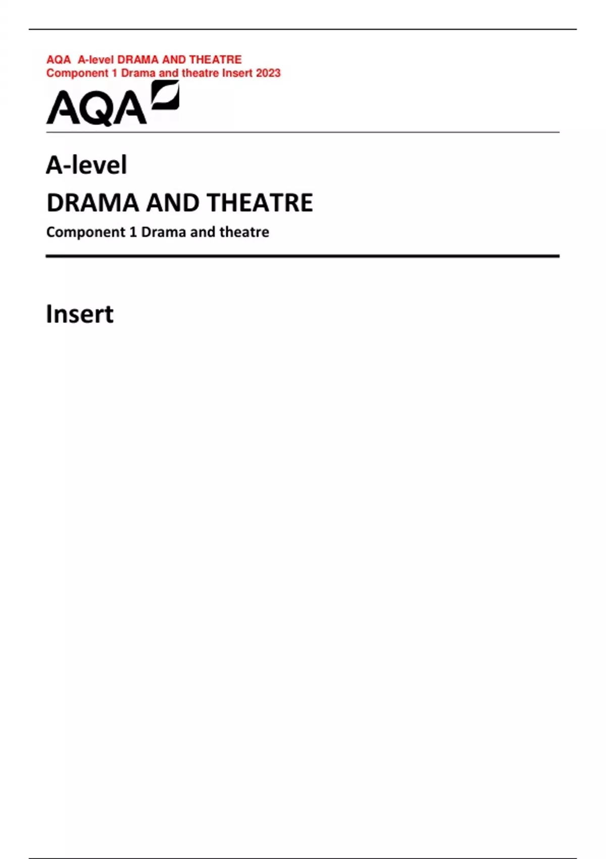 AQA A-level DRAMA AND THEATRE Component 1 Drama and theatre Insert 2023