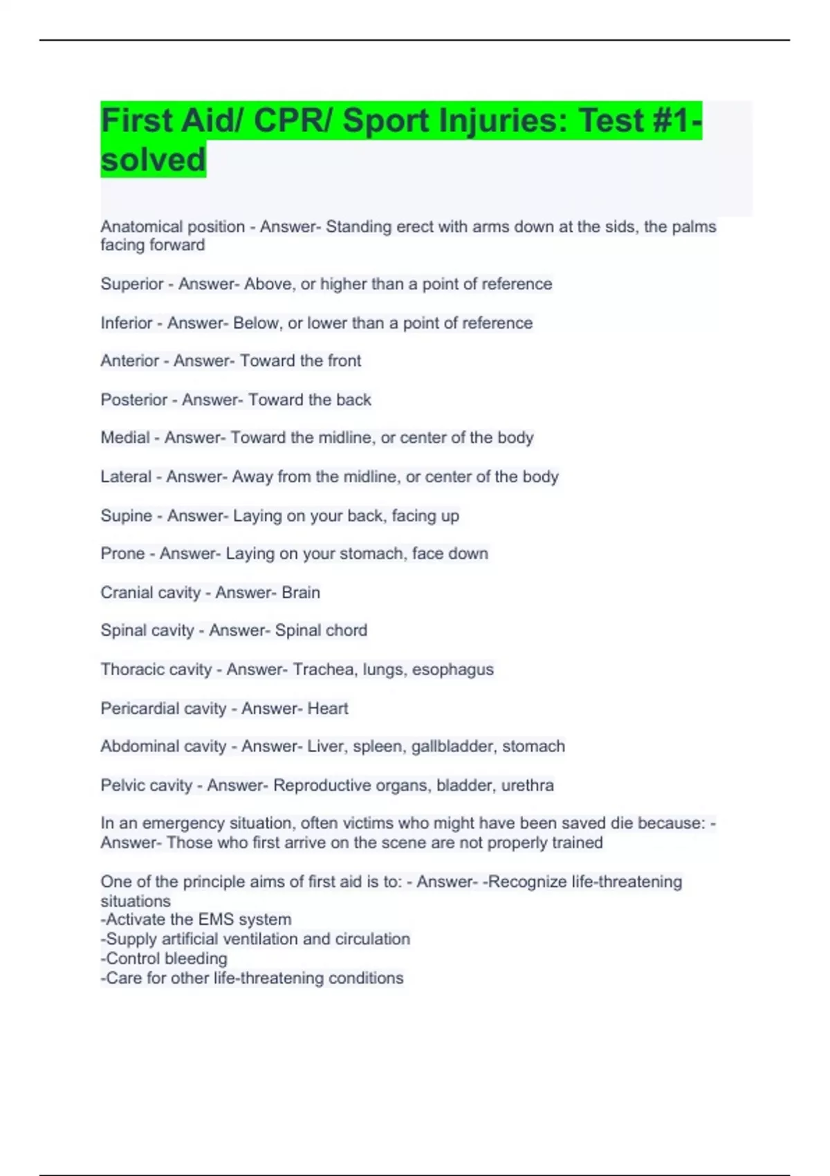 first aid cpr sport injuries test 1 solved