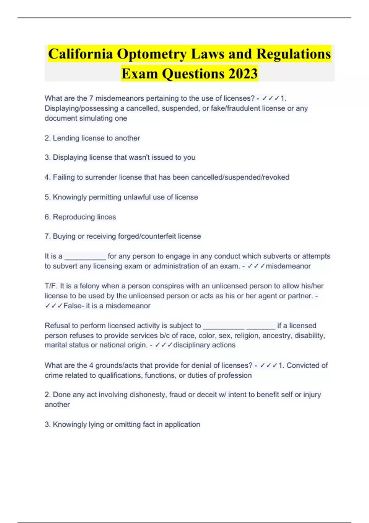 California Optometry Laws and Regulations Exam Questions 2023California Optometry Laws and Regulations Exam Questions 2023