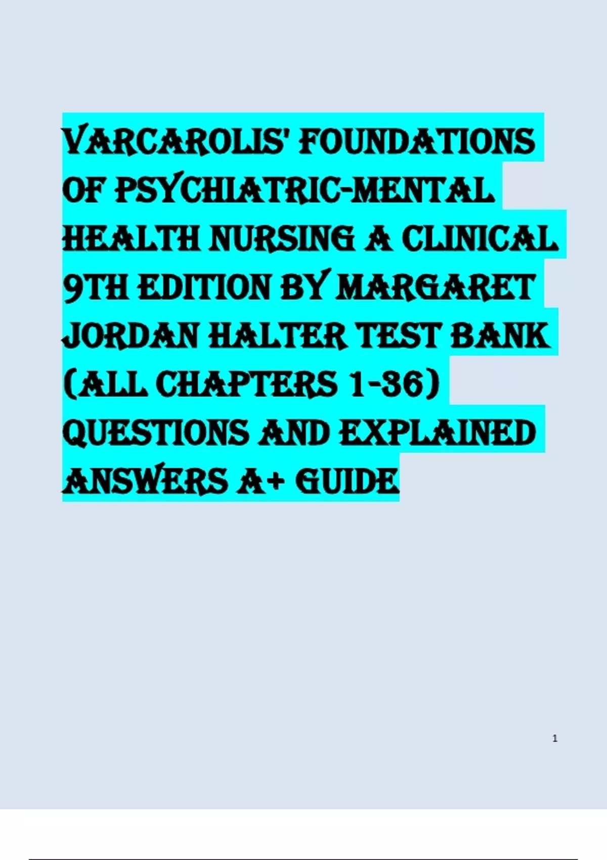VARCAROLIS' FOUNDATIONS OF PSYCHIATRIC-MENTAL HEALTH NURSING A CLINICAL 9TH EDITION BY MARGARET JORDAN HALTER TEST BANK (ALL CHAPTERS 1-36) QUESTIONS AND EXPLAINED ANSWERS A+ GUIDE