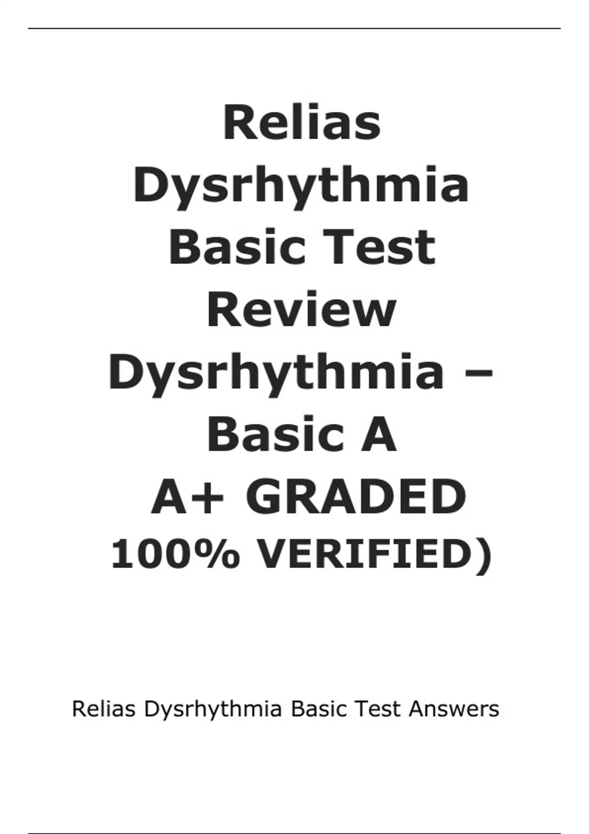 Relias Dysrhythmia Basic Test Review Dysrhythmia – Basic A A+ GRADED 100% VERIFIED)