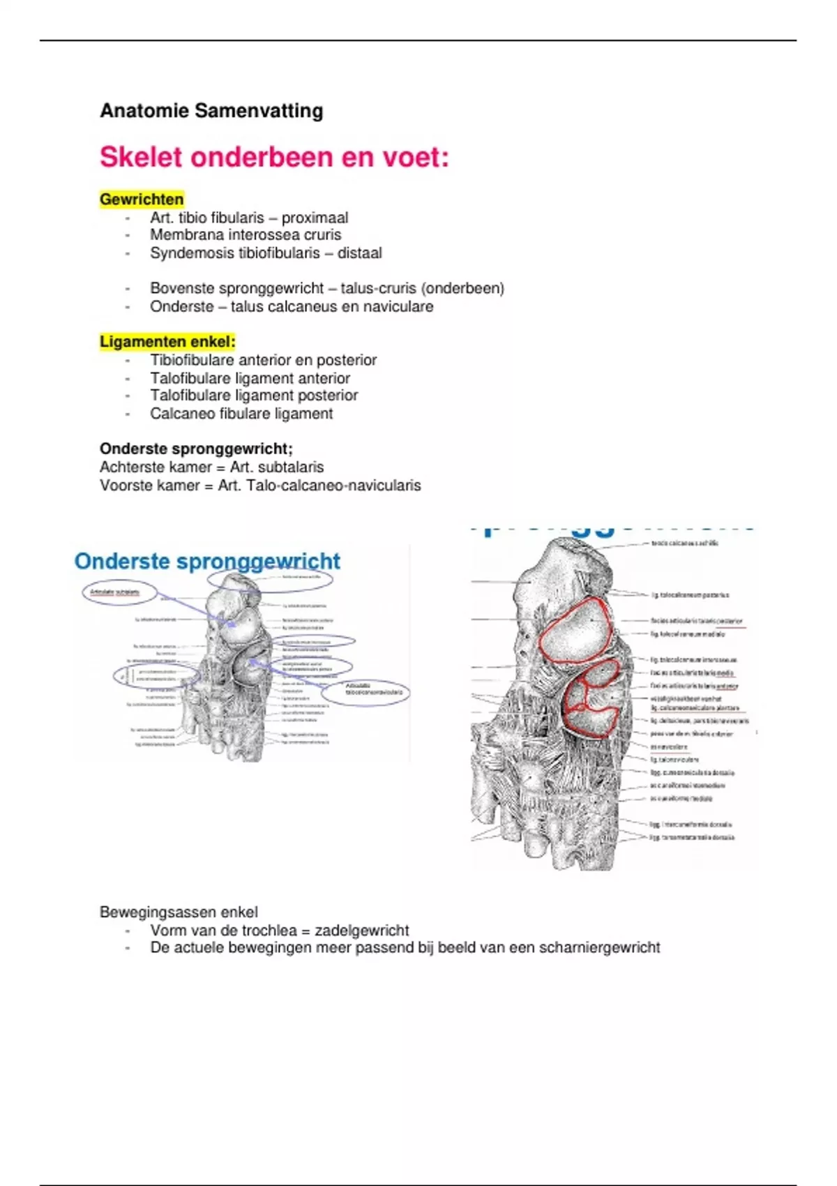 - Bovenste spronggewricht – talus-cruris (onderbeen)