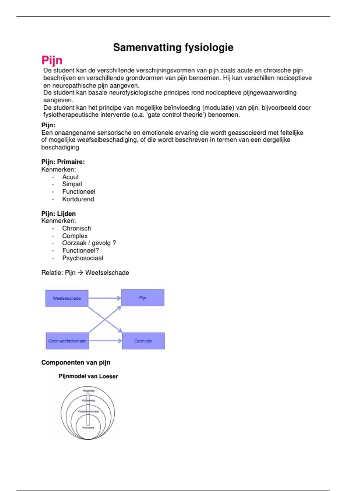 beschrijven en verschillende grondvormen van pijn benoemen. Hij kan verschillen nociceptieve