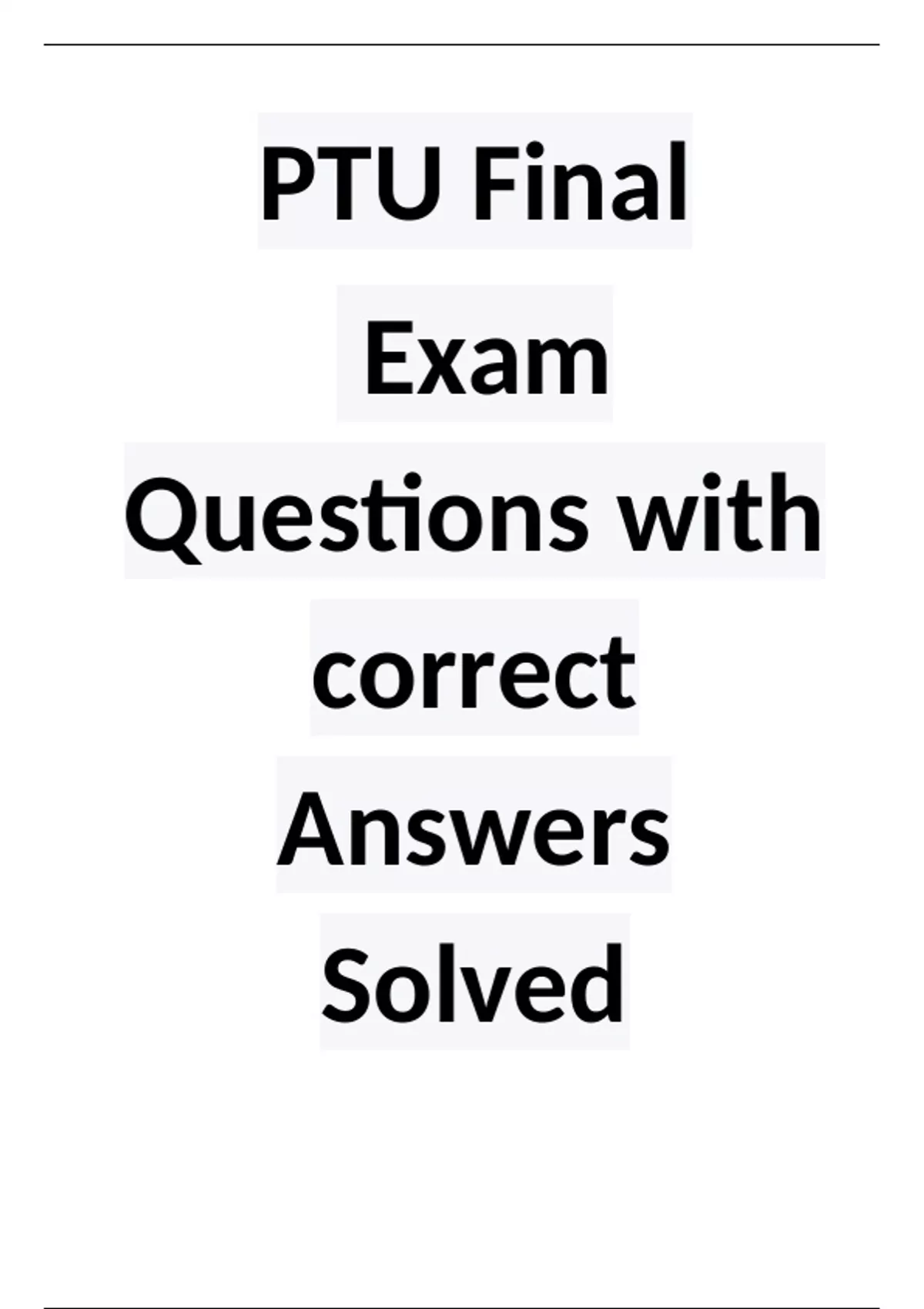 PTU Final Exam Questions with correct Answers Solved 2023/2024