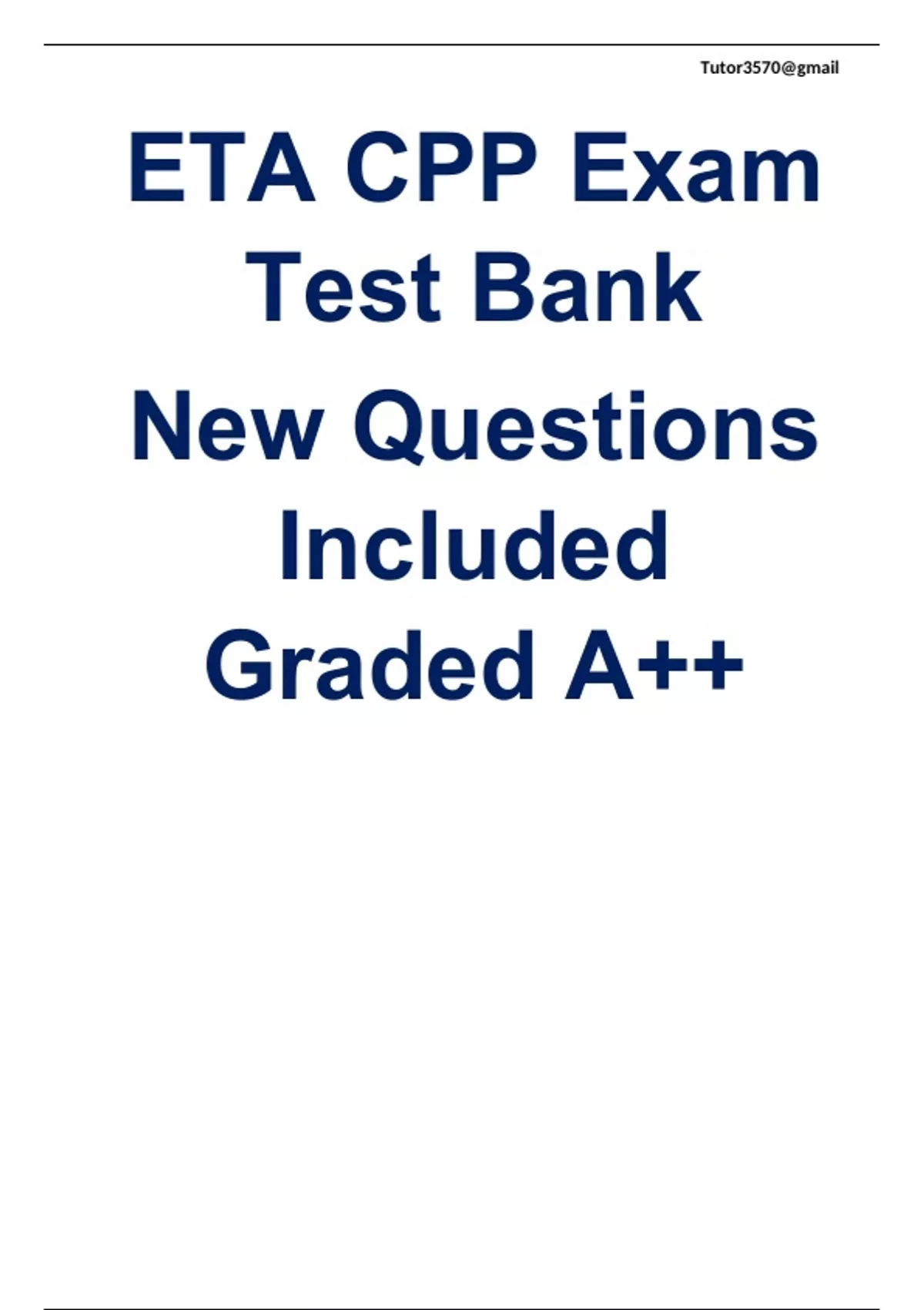 ETA CPP Exam Test Bank 2023/2024 New Questions Included Graded A++.