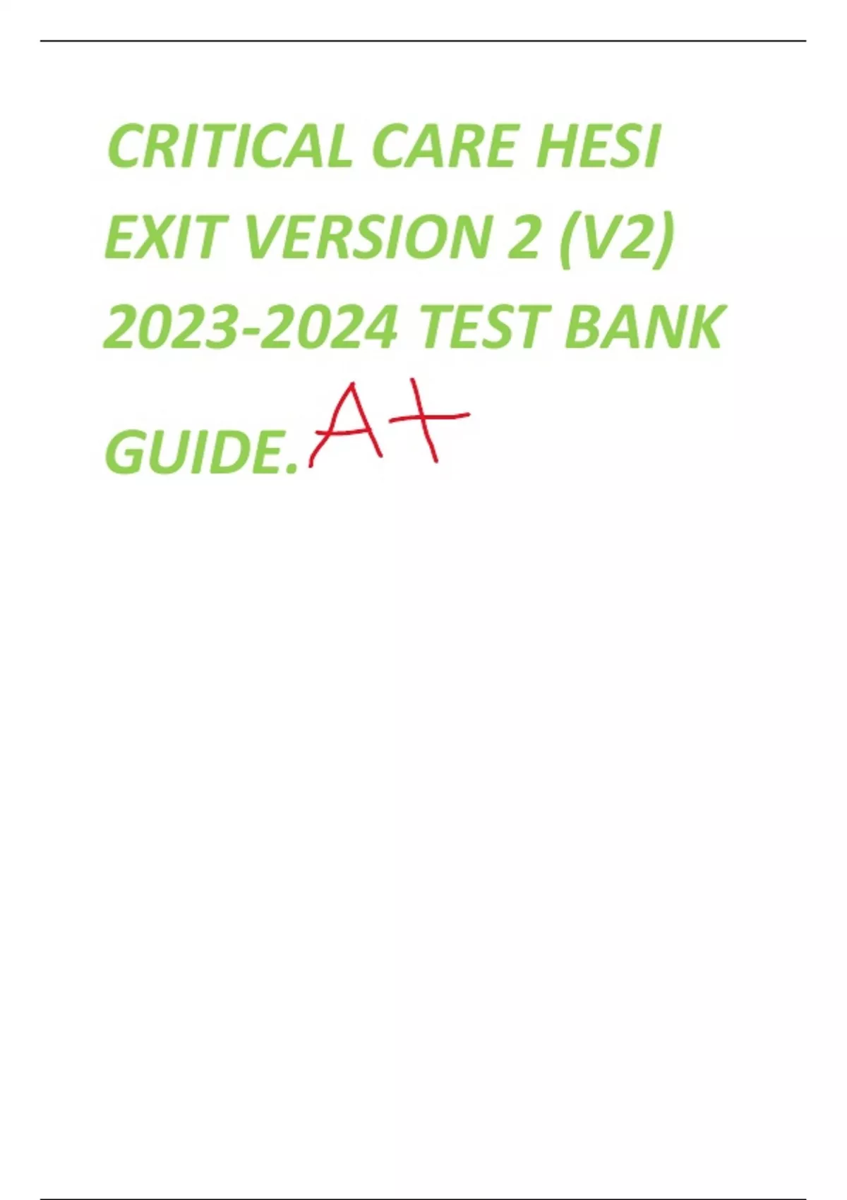 CRITICAL CARE HESI EXIT VERSION 2 (V2) TEST BANK GUIDE . Graded A +CRITICAL CARE HESI EXIT VERSION 2 (V2) TEST BANK GUIDE . Graded A +CRITICAL CARE HESI EXIT VERSION 2 (V2) TEST BANK GUIDE . Graded A +CRITICAL CARE HESI EXIT