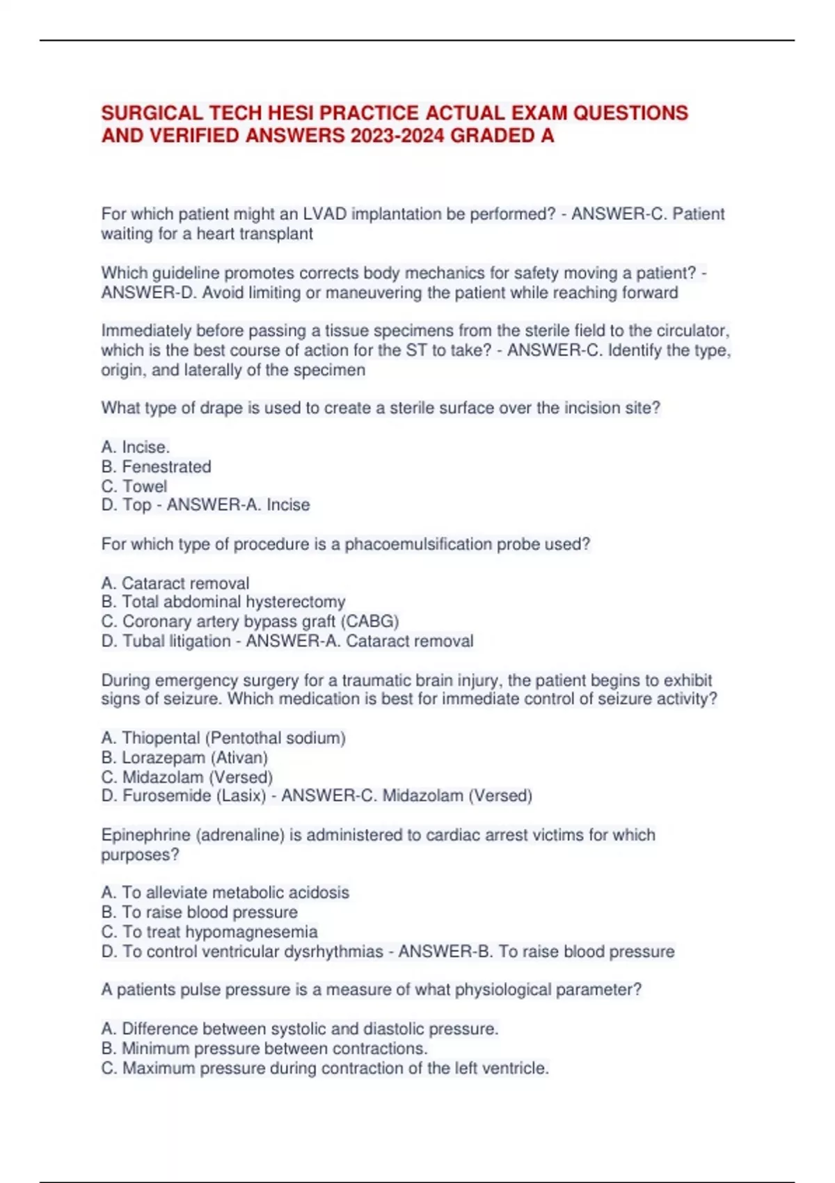 SURGICAL TECH HESI PRACTICE ACTUAL EXAM QUESTIONS AND VERIFIED ANSWERS GRADED A