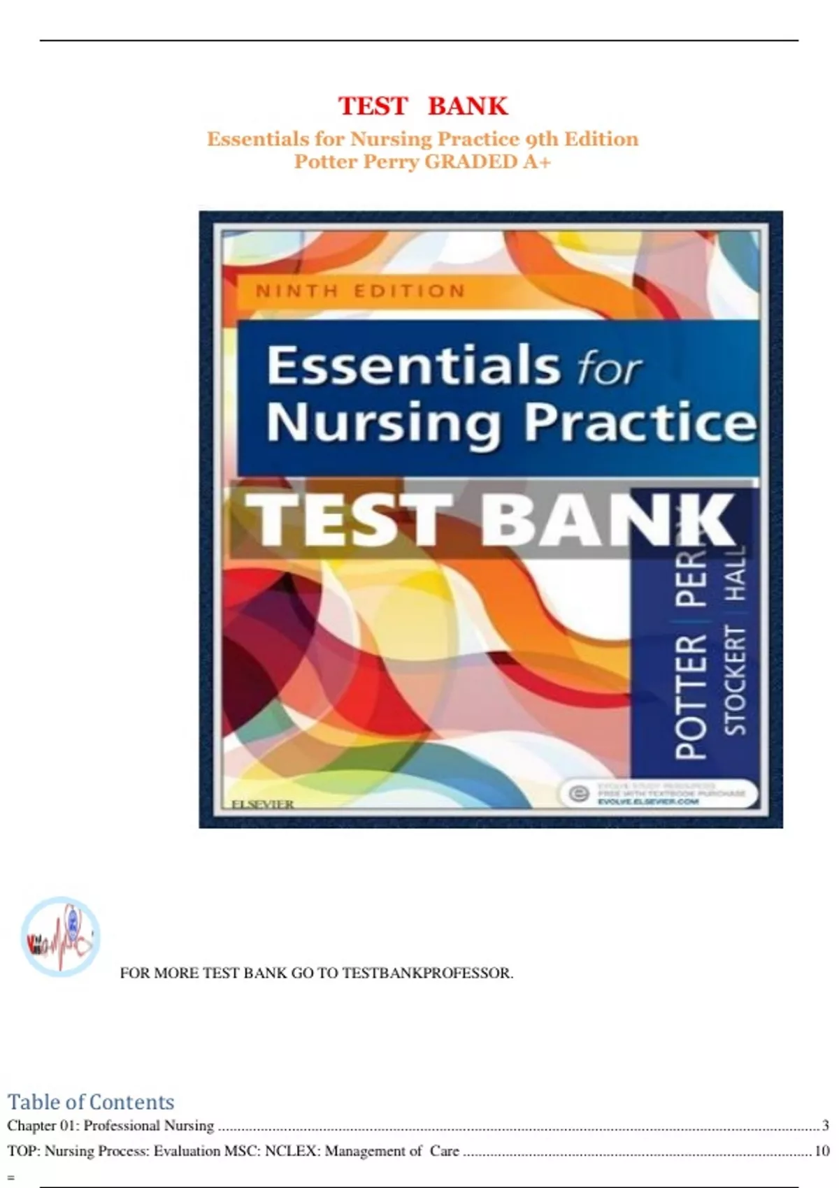 TEST BANK Essentials for Nursing Practice 9th Edition Potter Perry GRADED A+