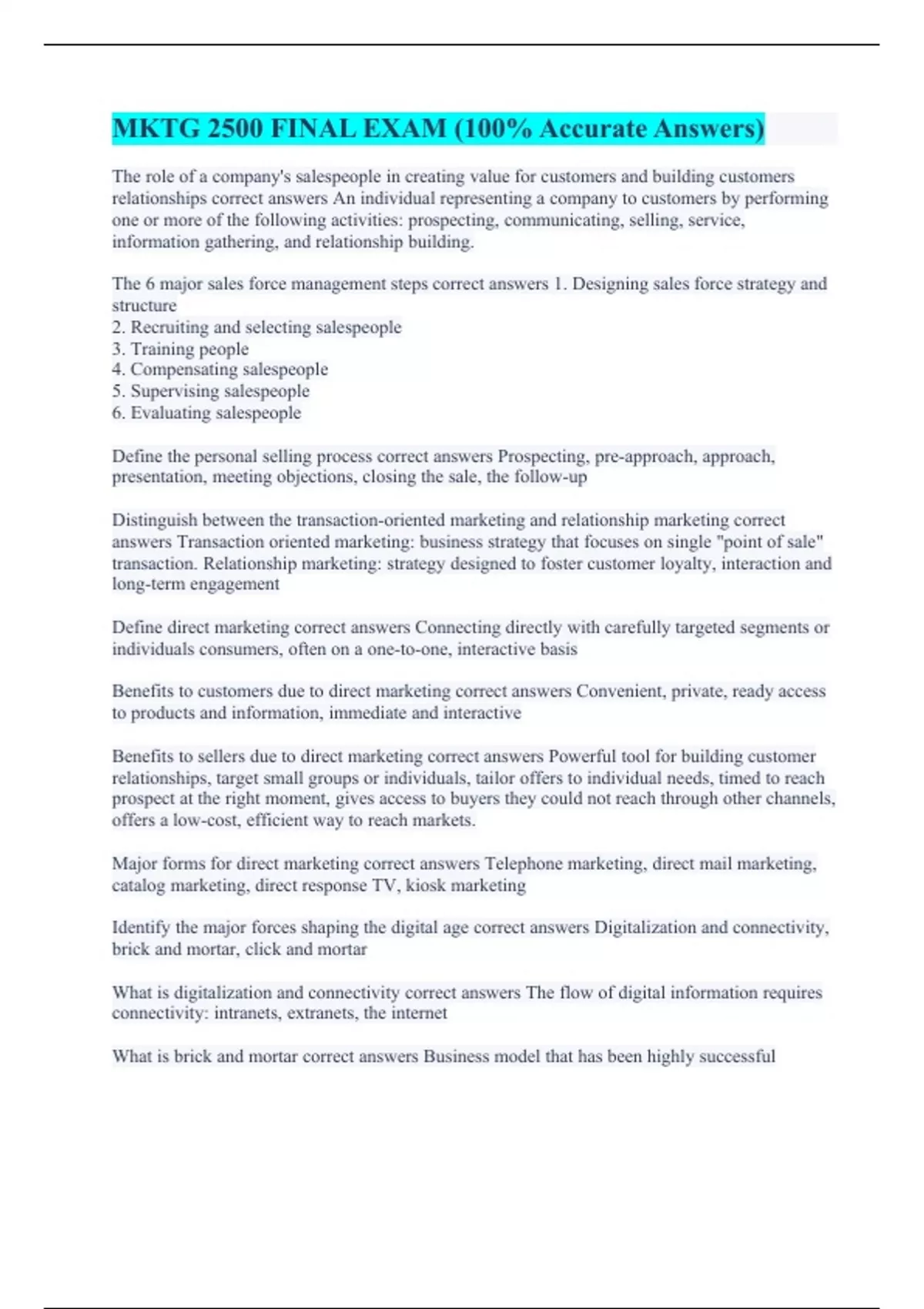 MKTG 2500 FINAL EXAM (100% Accurate Answers)